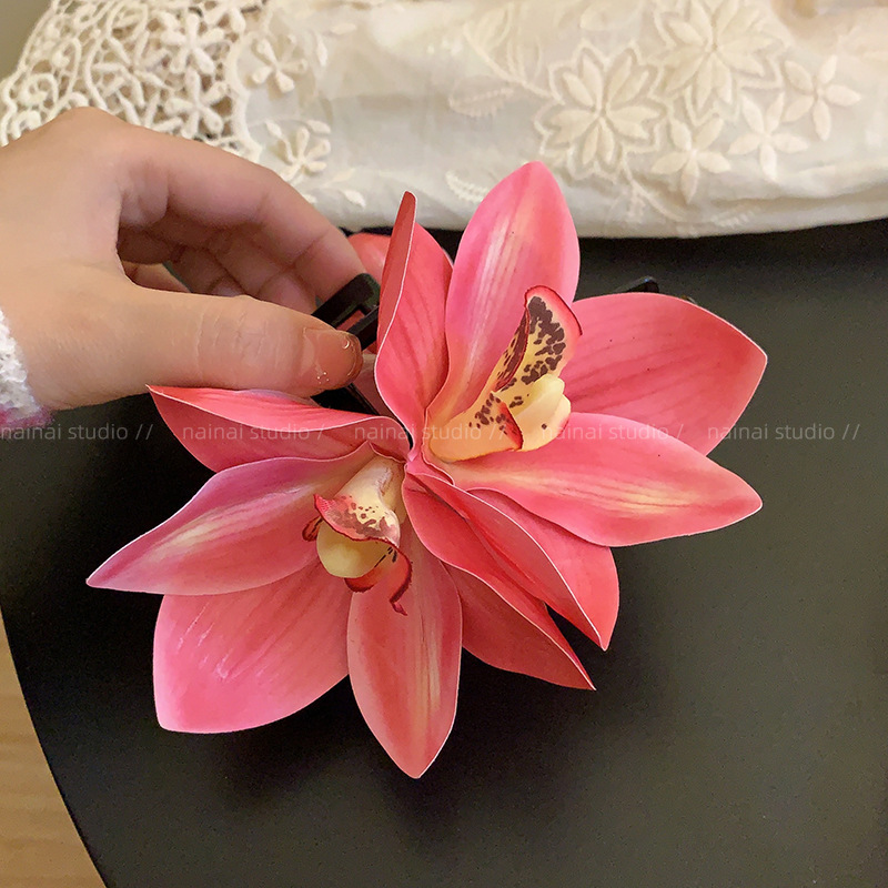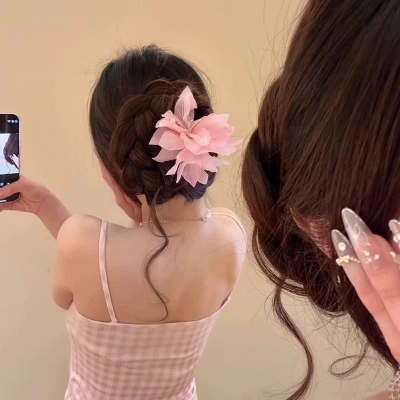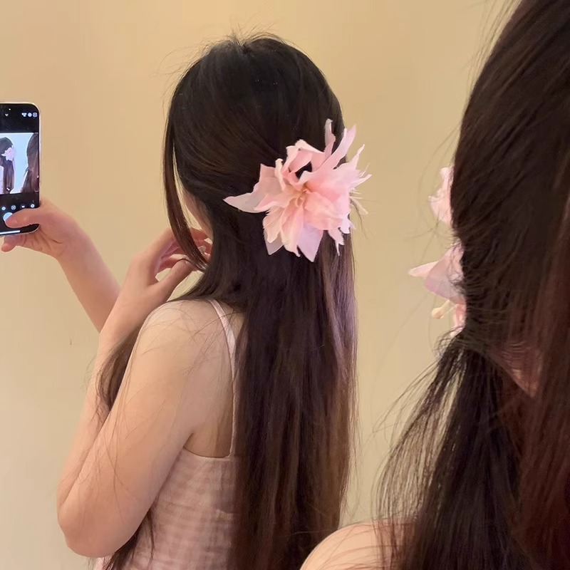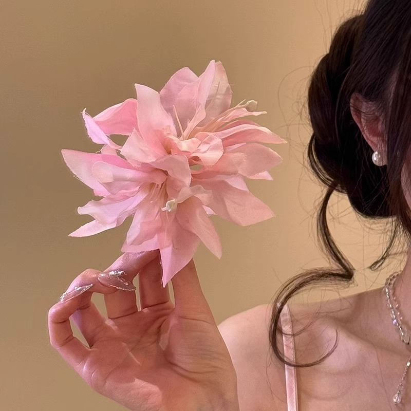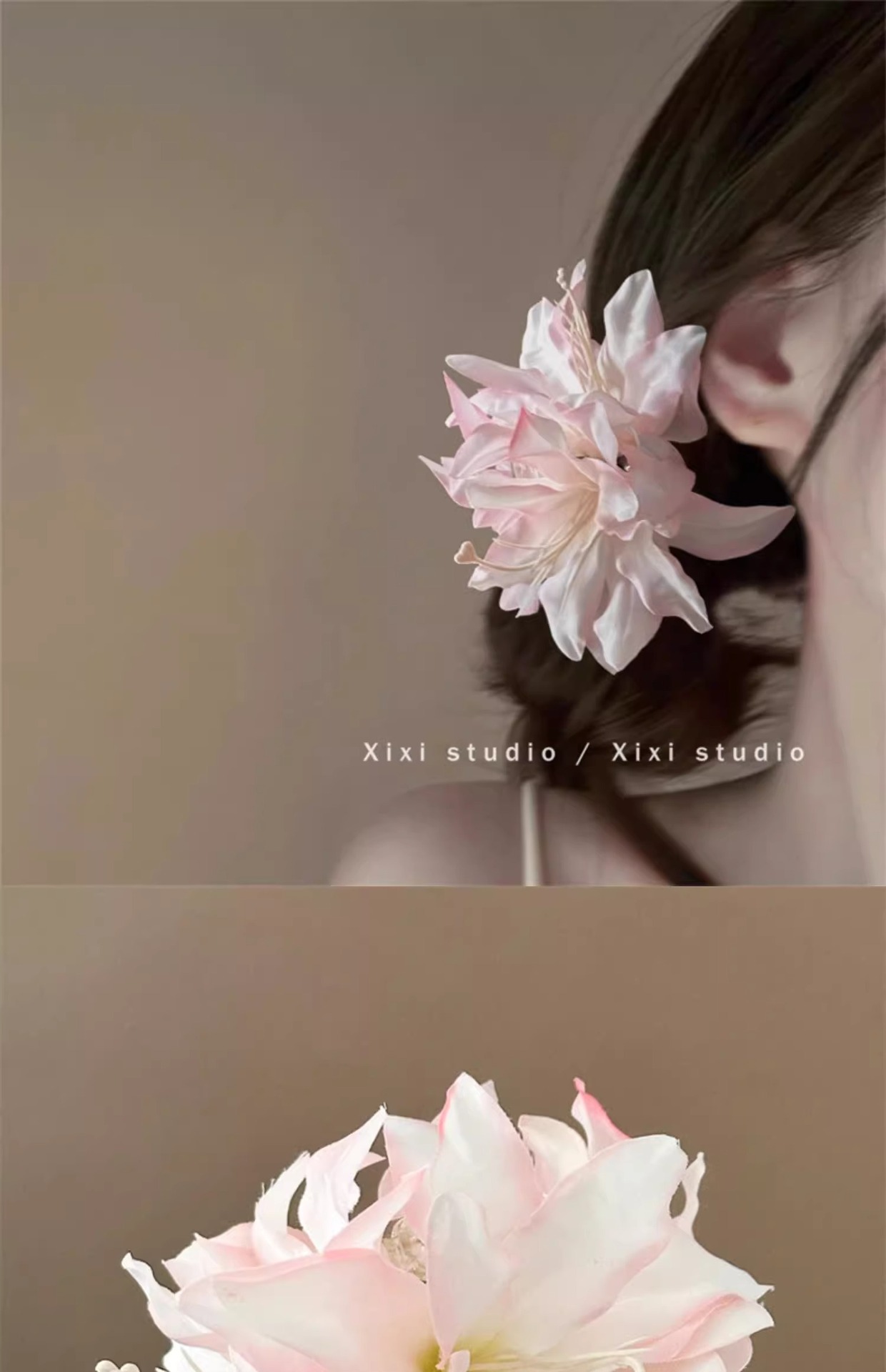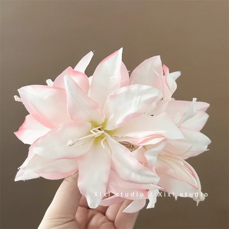 아름다운 핑크 슈퍼 요정 백합 꽃 클립 휴일 상어 클립 분위기 헤어핀 여성 순수한 욕망 머리 꽃 헤어 액세서리