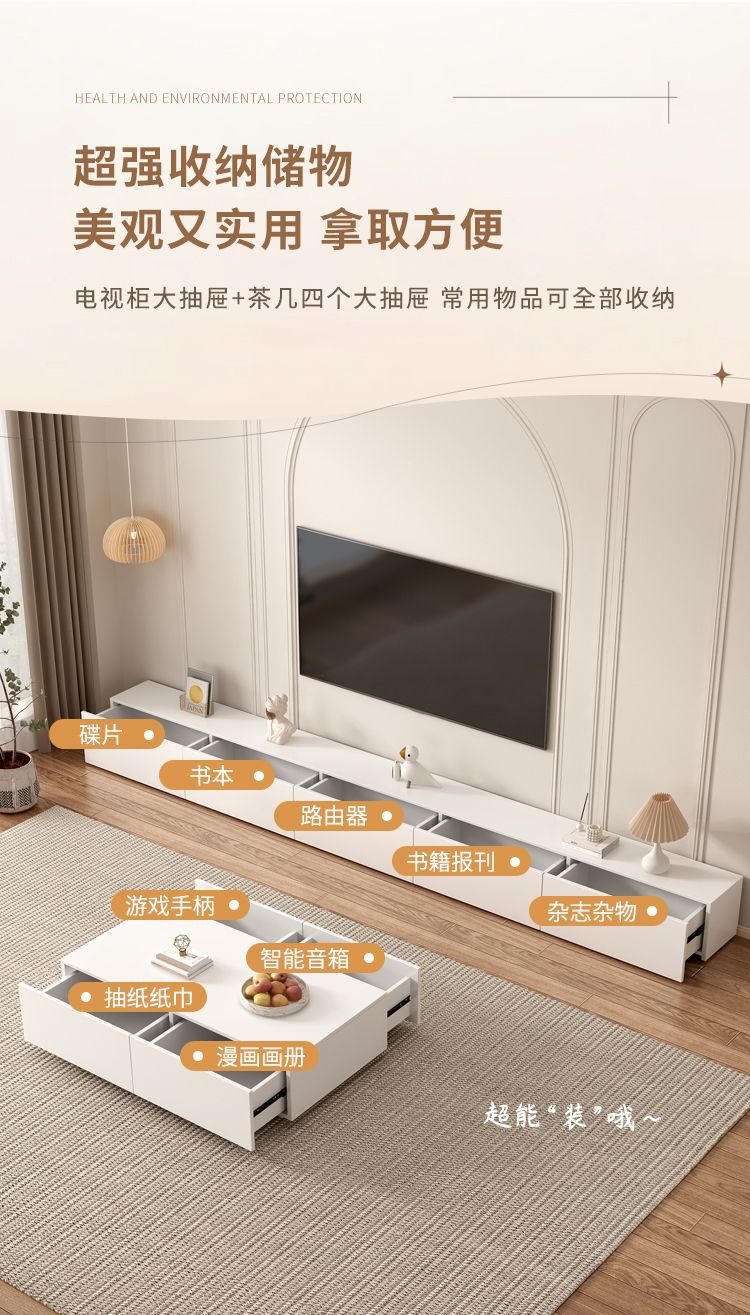 • [크림 스타일] 4.4m 서랍형 TV장 + 1.2m 커피 테이블