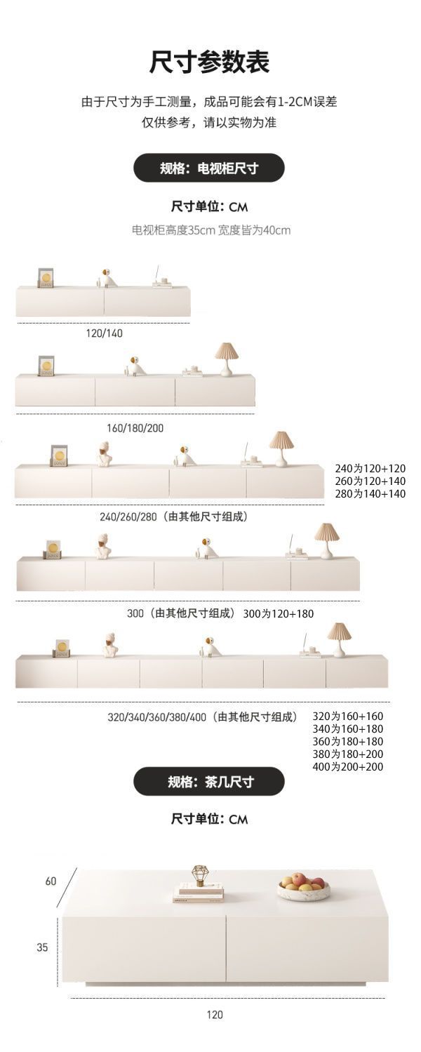 • [크림 스타일] 3.5m인용 TV장 + 1.2m인용 커피 테이블