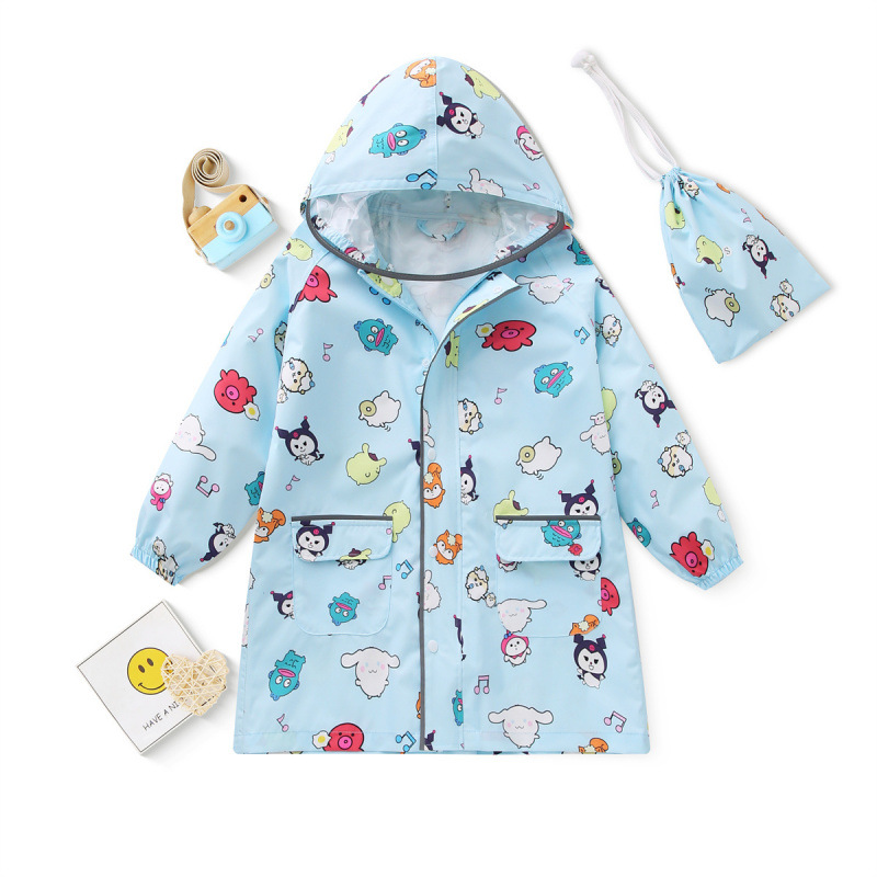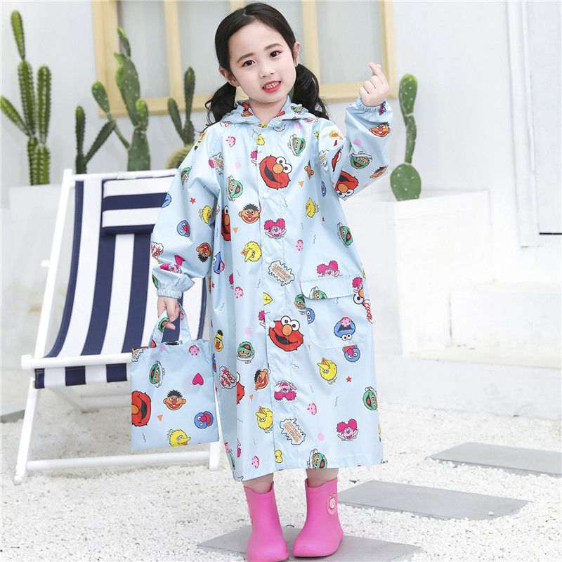 초등학생을위한 학교 가방을 가진 남녀 용 일본 어린이 비옷 성인 판초 만화 블랙 슈퍼 세서미 스트리트 방수 코트
