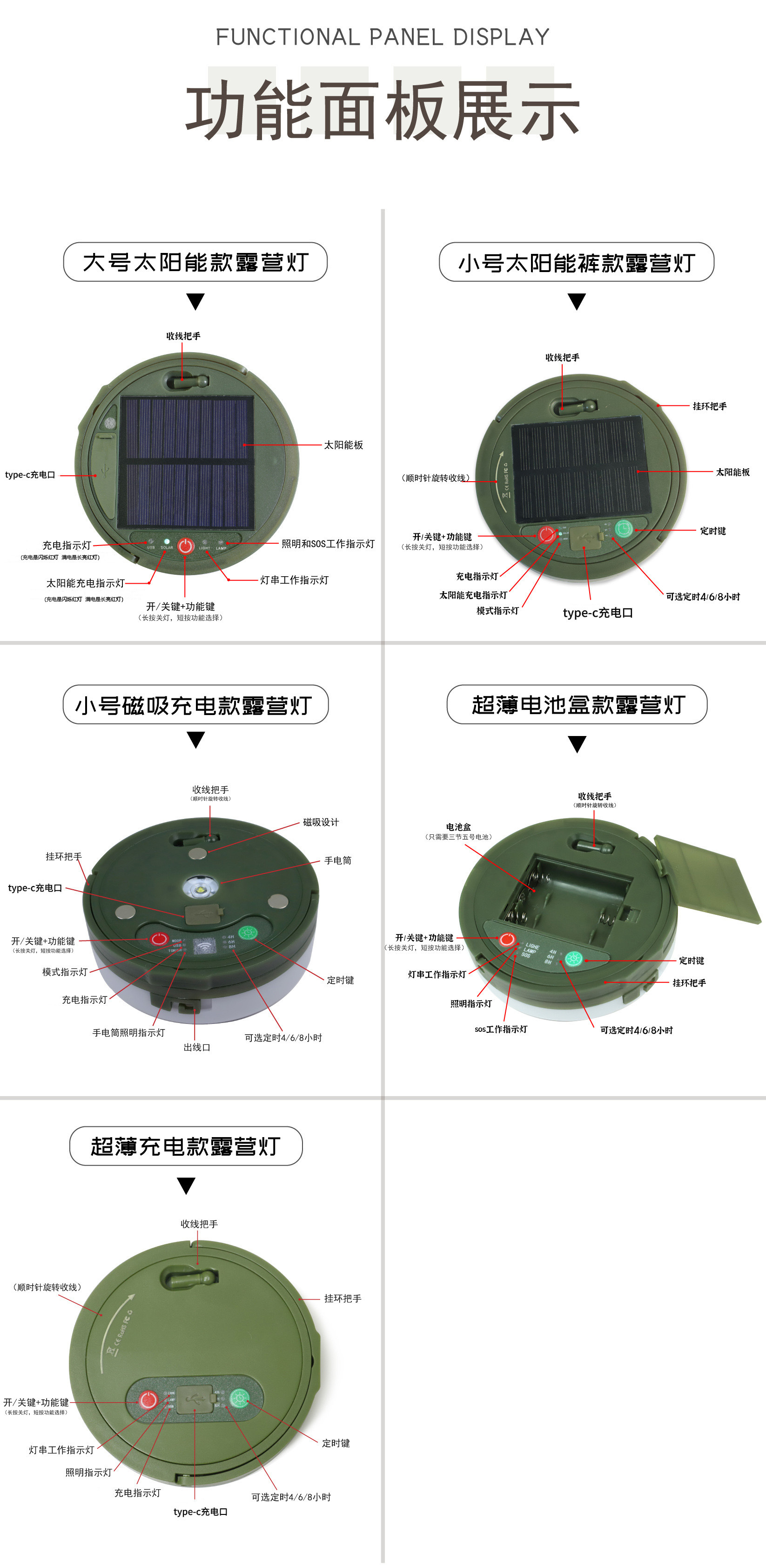 跨境LED户外露营灯室外野营帐篷应急照明灯太阳能USB充电氛围彩灯