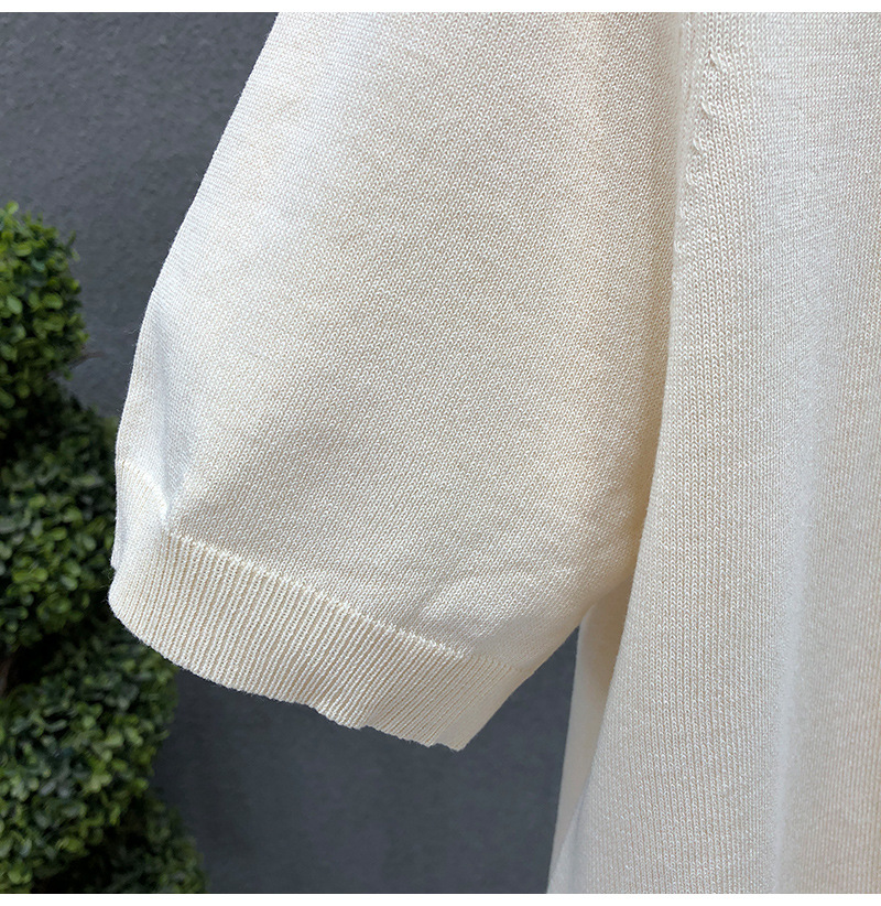 여름 풀오버 얇은 반팔 티셔츠 남성용 고급 둥근 목 얇은 니트 셔츠 2025 새로운 간단한 반소매