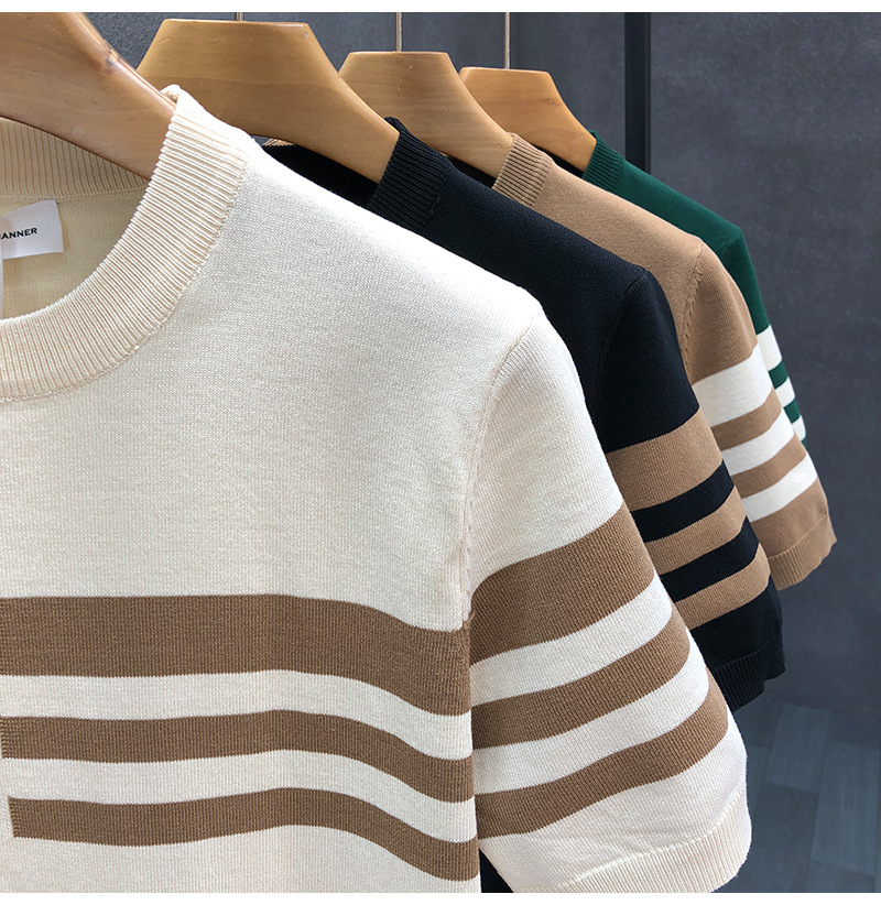 여름 풀오버 얇은 반팔 티셔츠 남성용 고급 둥근 목 얇은 니트 셔츠 2025 새로운 간단한 반소매스토어 가기