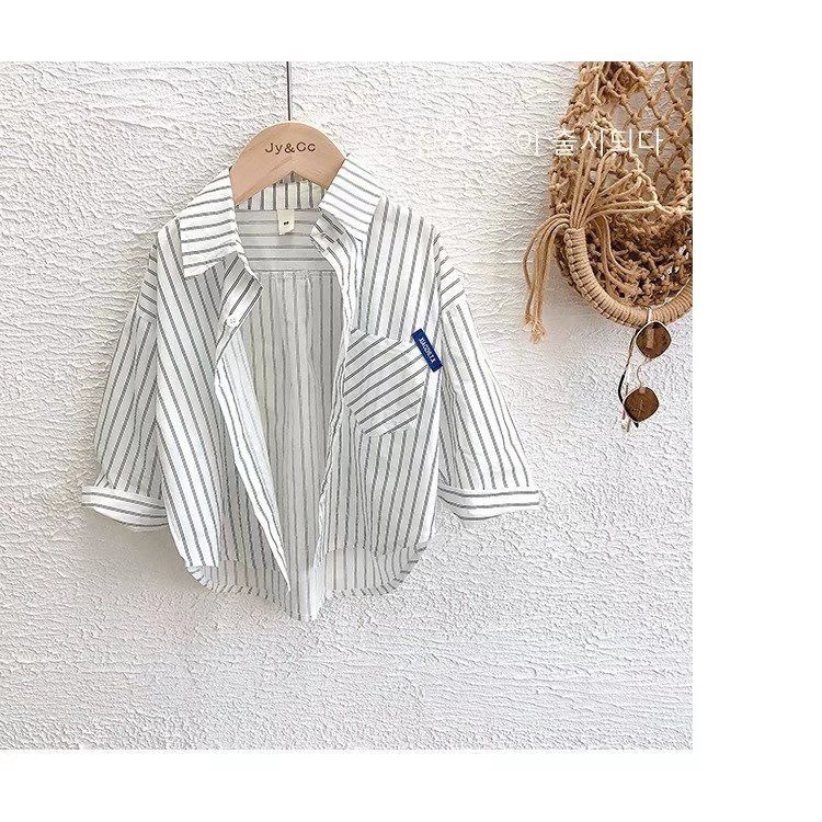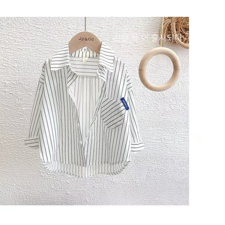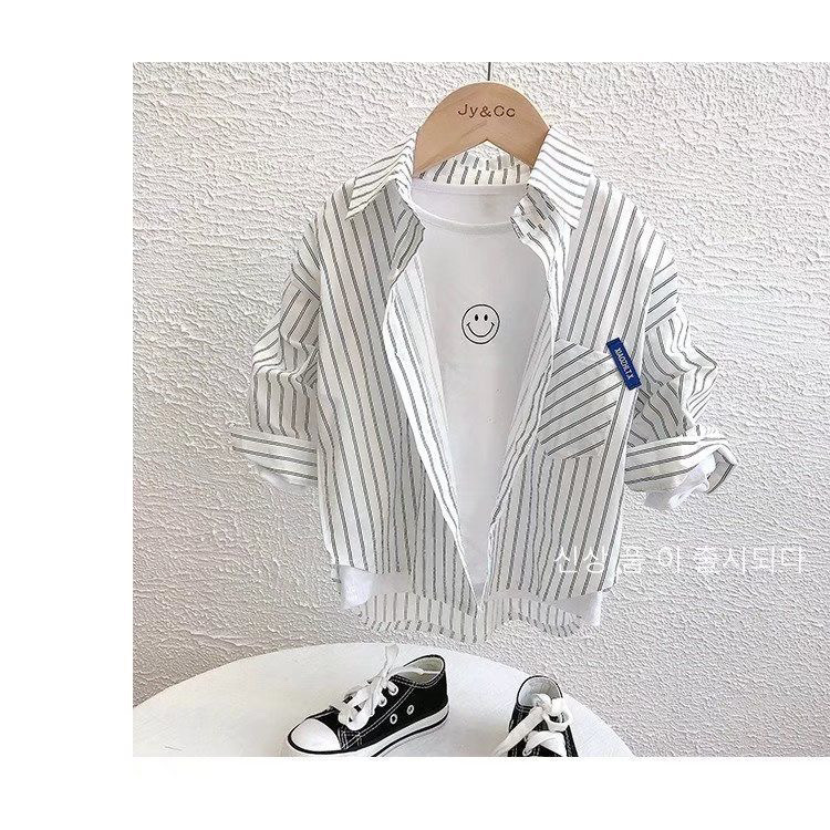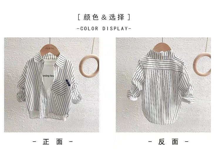 소년 셔츠 2025 봄, 가을 어린이 세로 줄무늬 자외선 차단 의류 한국 스타일 긴팔 학생 셔츠 서양식상의스토어 가기
