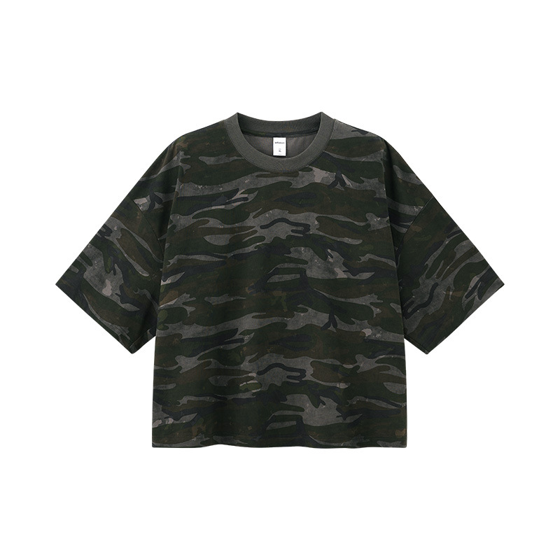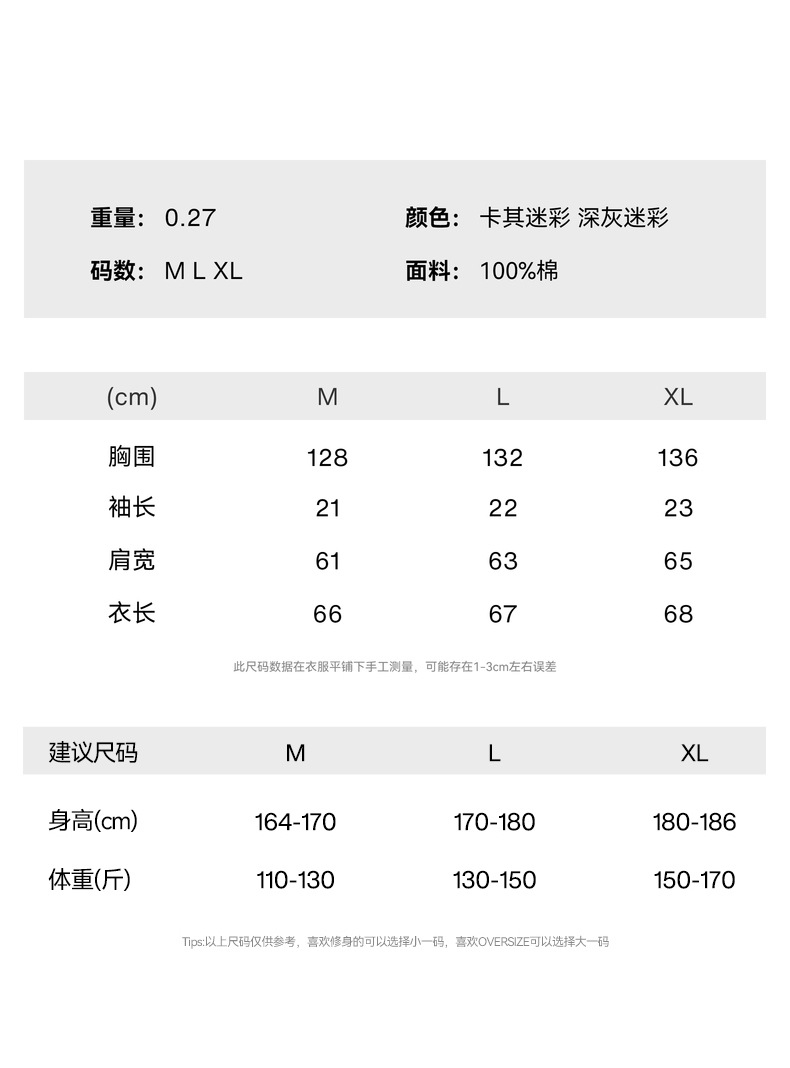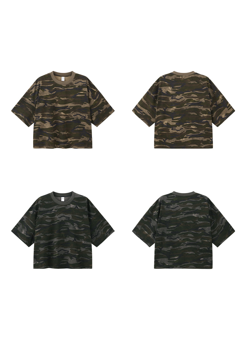 Jie Zhan 남성복 | 박스 위장 티셔츠 2025 봄/여름 새로운 조수 브랜드 아메리칸 스트리트 코튼 짧은 소매 5 점 소매 남성