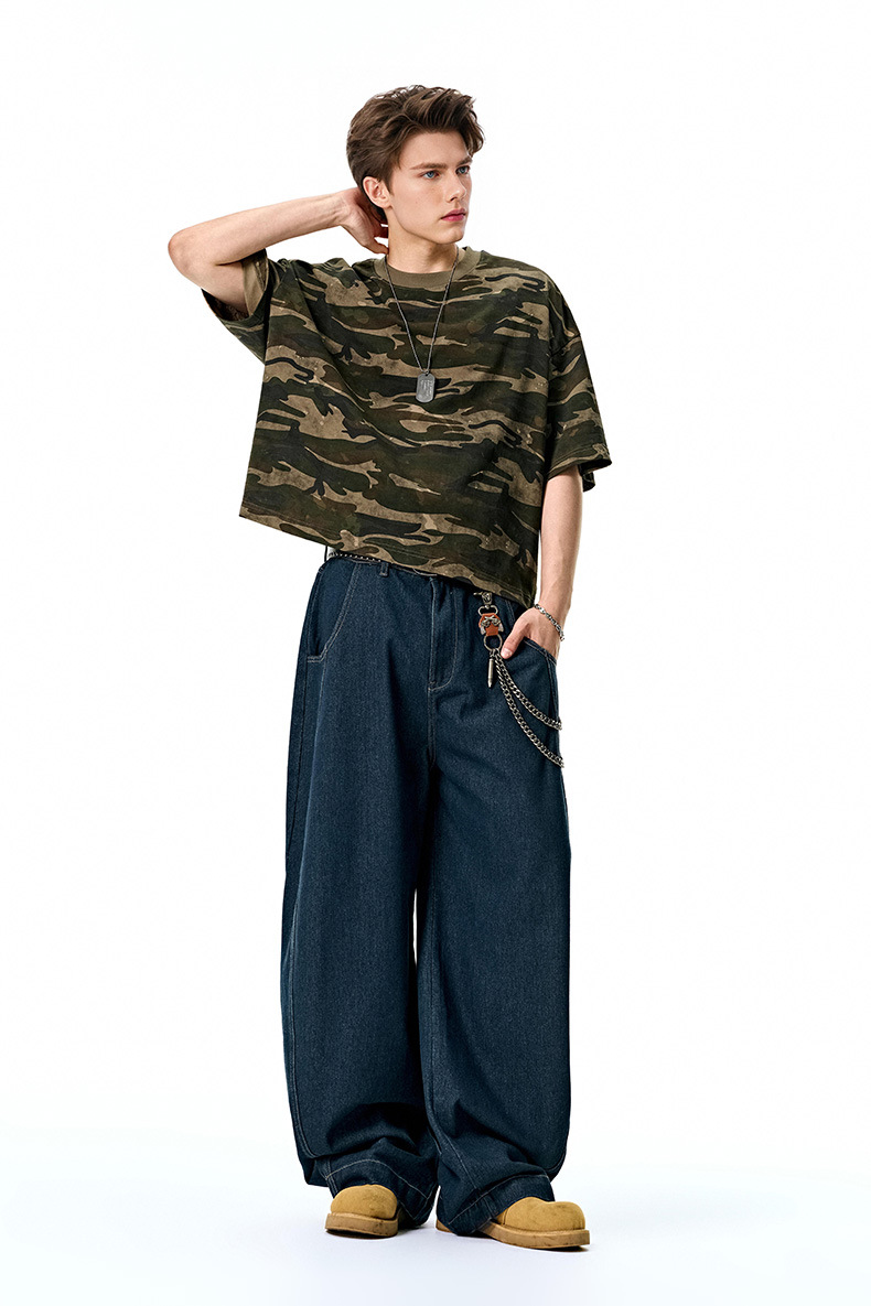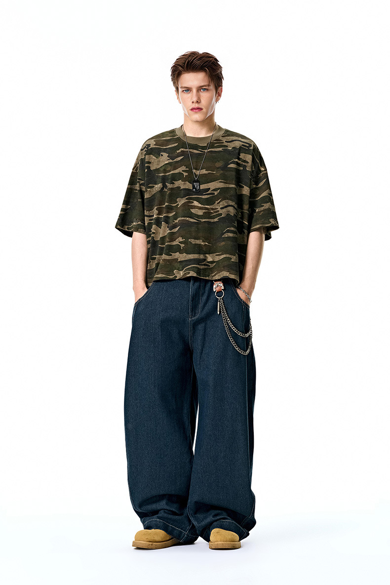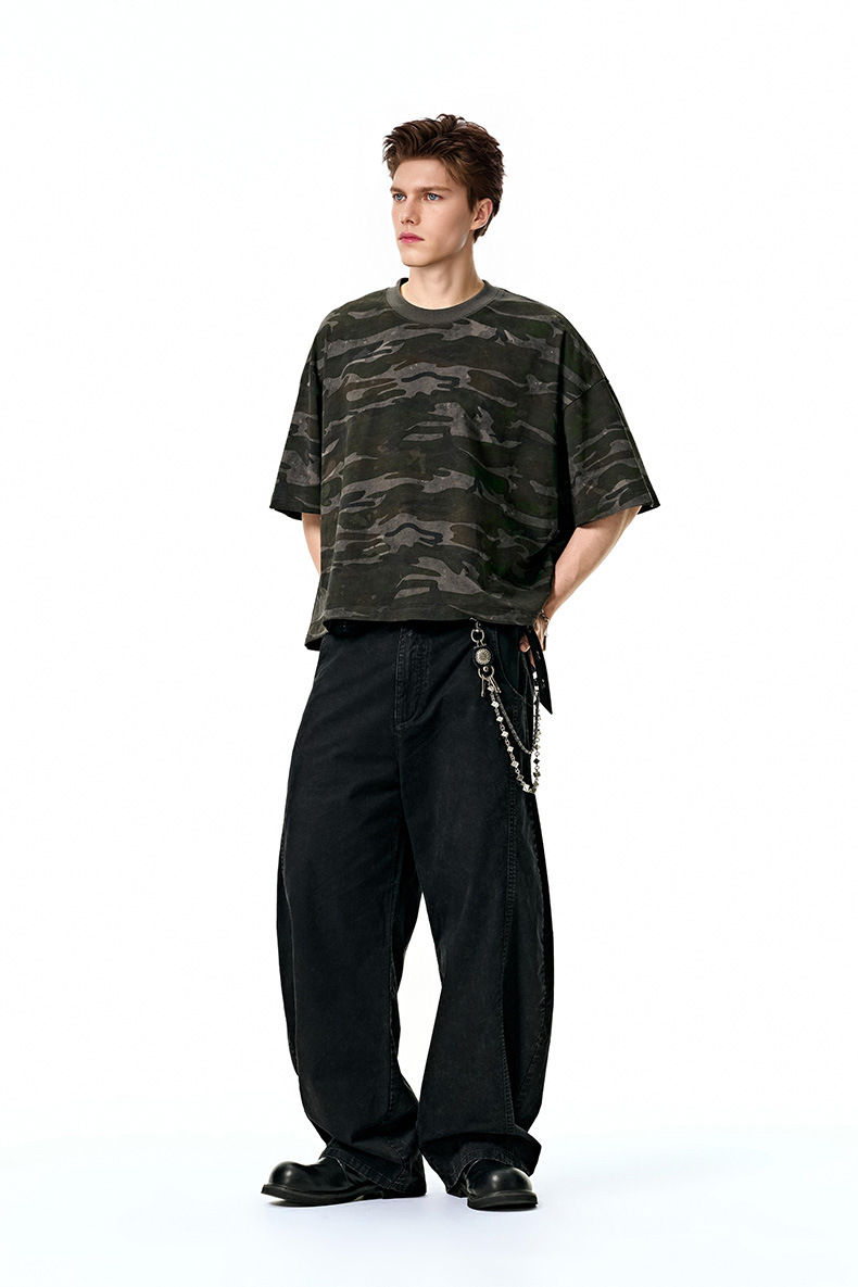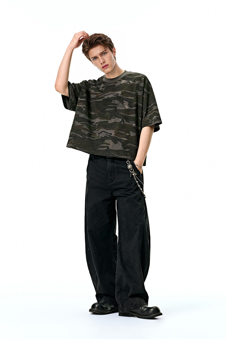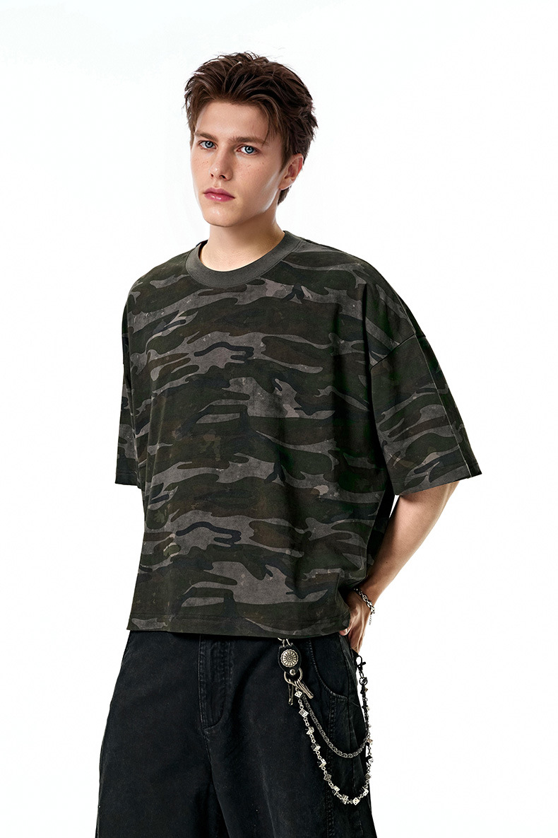 Jie Zhan 남성복 | 박스 위장 티셔츠 2025 봄/여름 새로운 조수 브랜드 아메리칸 스트리트 코튼 짧은 소매 5 점 소매 남성스토어 가기