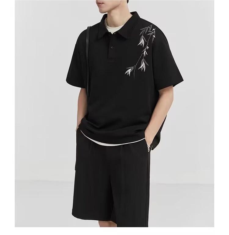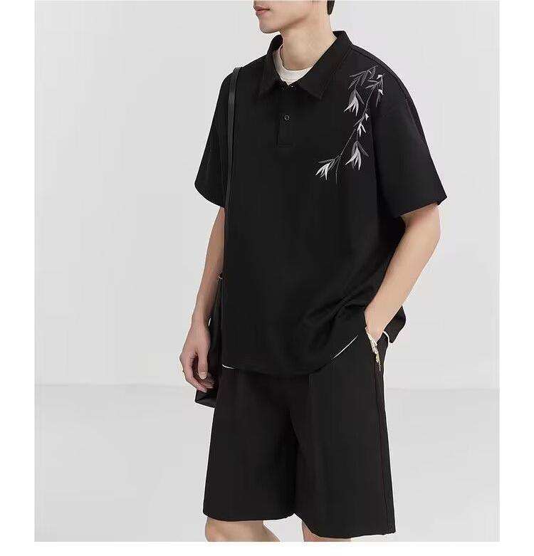 2025 여름 새로운 중국 스타일 국가 스타일 디자인 센스 엘 폴로 셔츠 남성용 반팔 캐주얼 하이 엔드 티셔츠