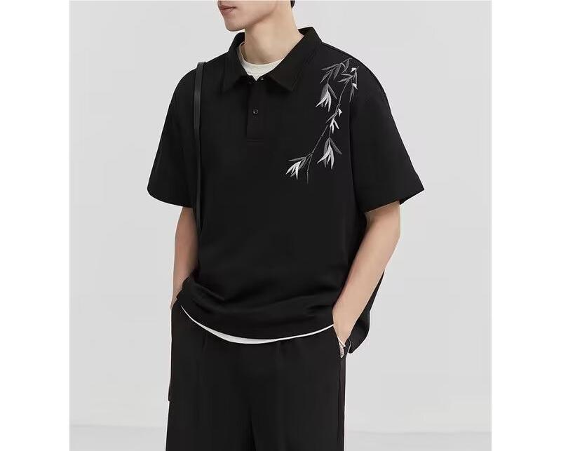 2025 여름 새로운 중국 스타일 국가 스타일 디자인 센스 엘 폴로 셔츠 남성용 반팔 캐주얼 하이 엔드 티셔츠스토어 가기