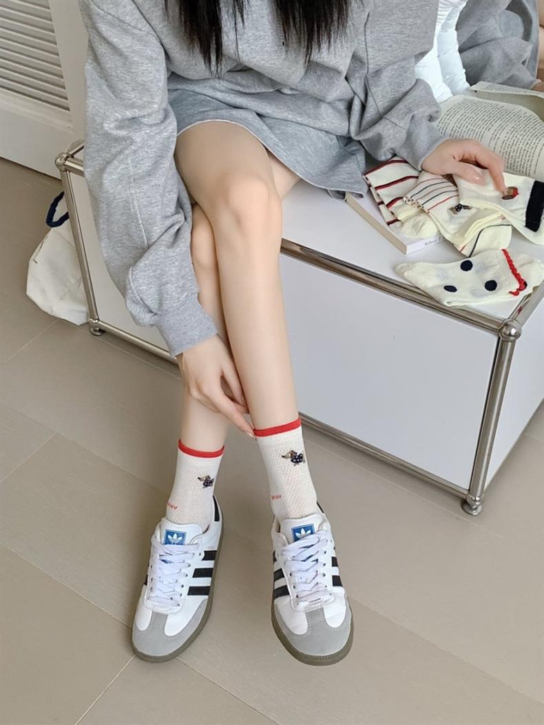양말 여성용 얇은 강아지 캐주얼 종아리 양말 줄무늬 자수 고가치 트렌디 메쉬 통기성 봄 여름 여성 양말스토어 가기