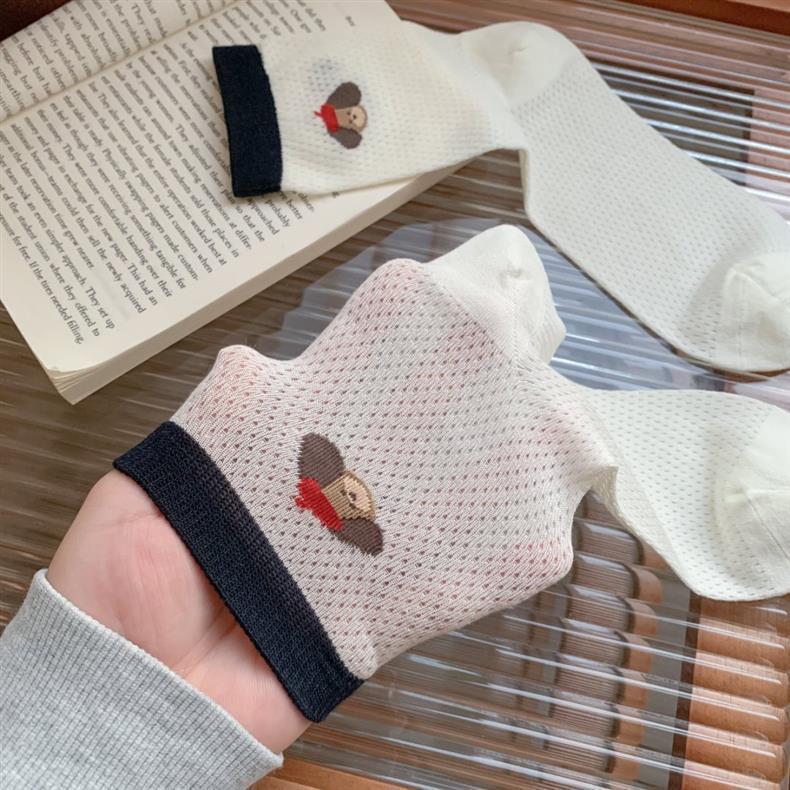 양말 여성용 얇은 강아지 캐주얼 종아리 양말 줄무늬 자수 고가치 트렌디 메쉬 통기성 봄 여름 여성 양말