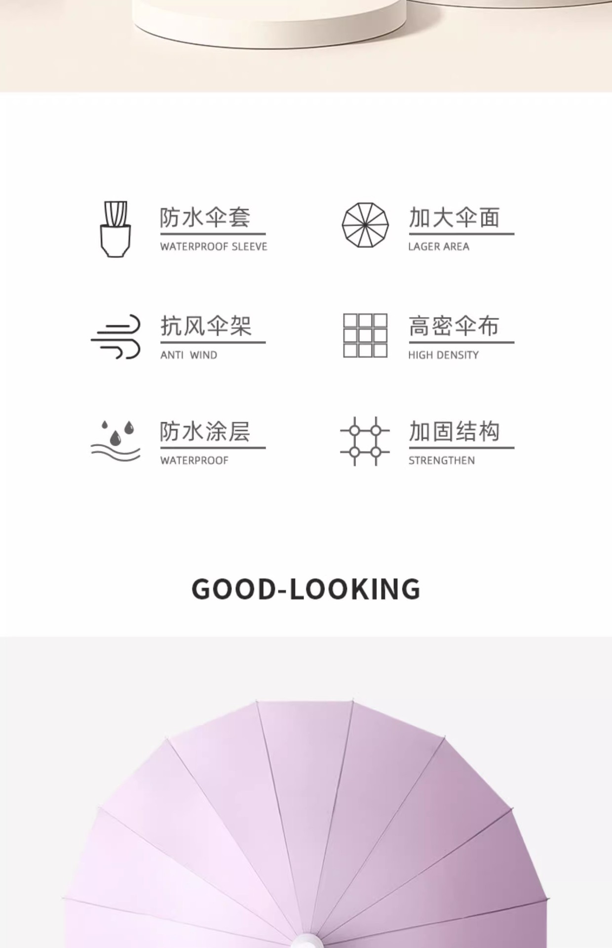 점진적 변화 한 조각 긴 손잡이 우산은 소녀 높은 색 가치 폭풍우 특별 증가 강화 농축 바람 저항 매뉴얼 새지 않습니다