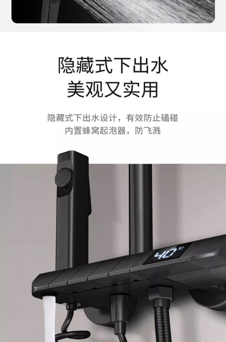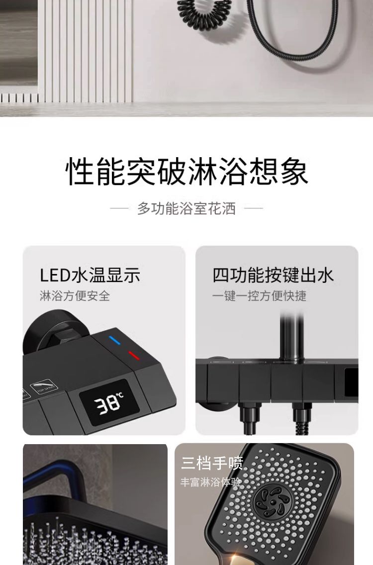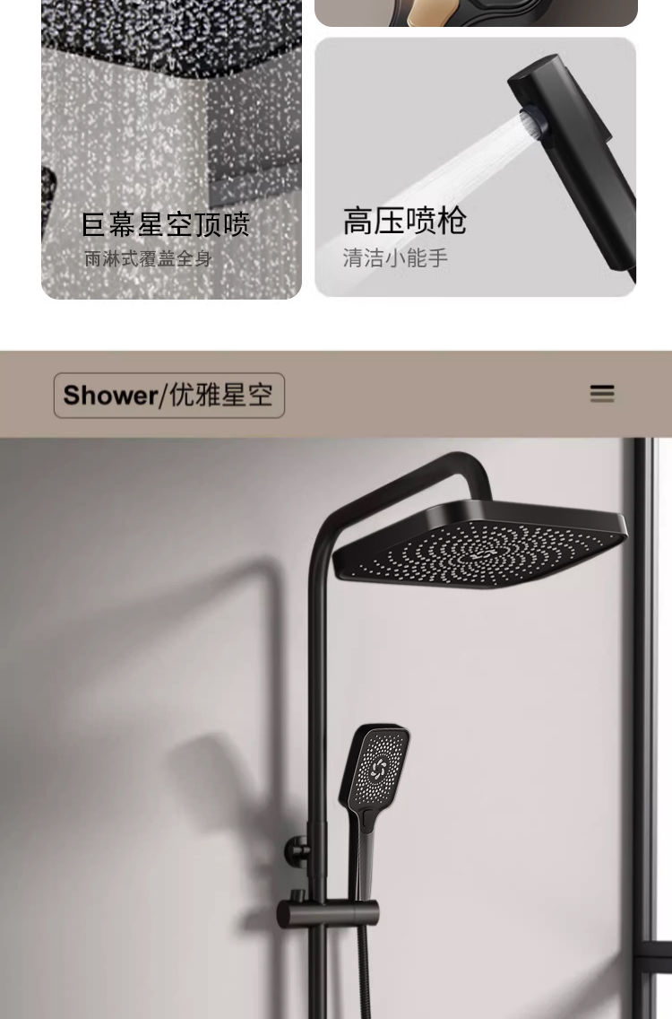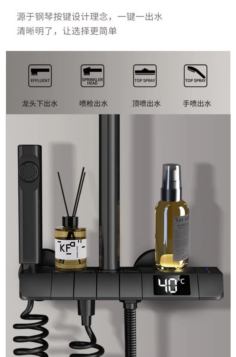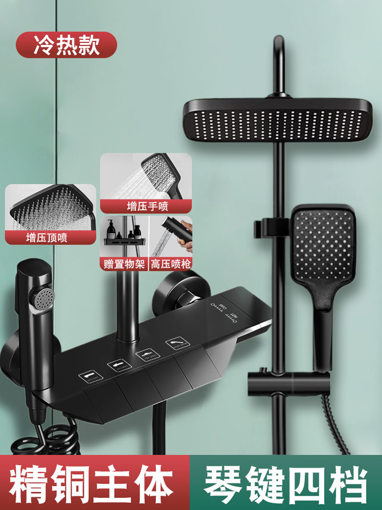 • 전체 구리 두꺼워진 [우아한 검정색] 4단 피아노 키 샤워 - 항온 모델