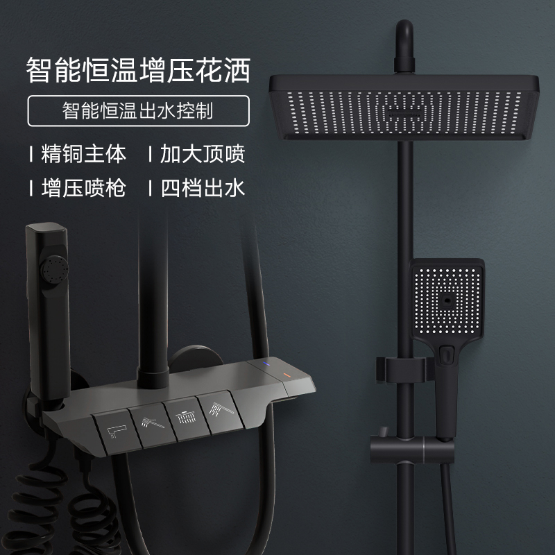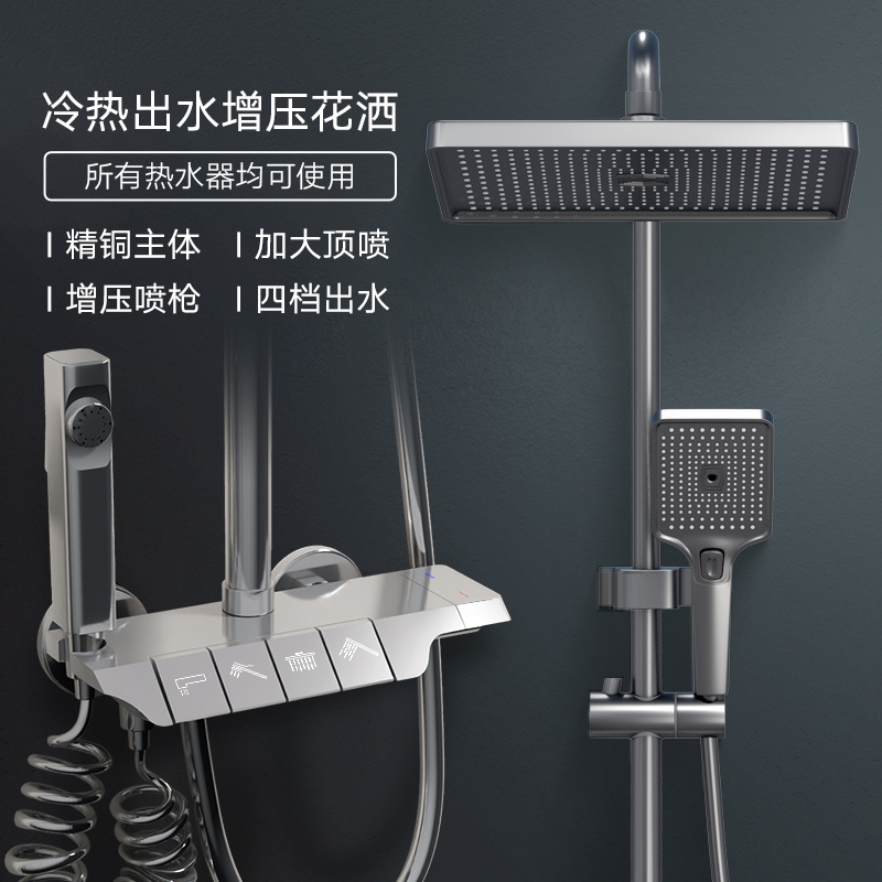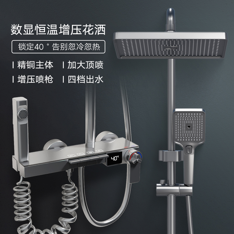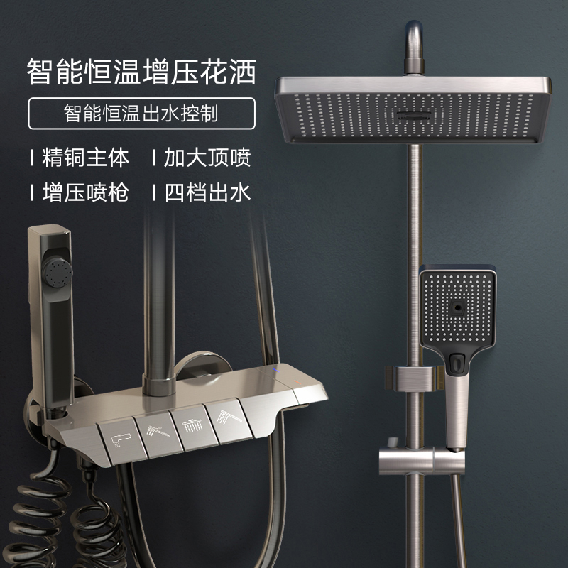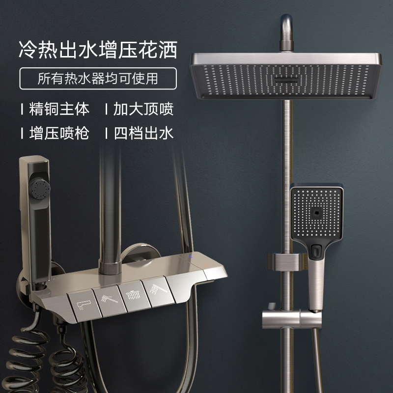 • 전체 구리 두꺼워짐 [물 도금 건 그레이] 4단 피아노 키 샤워 - 항온 모델