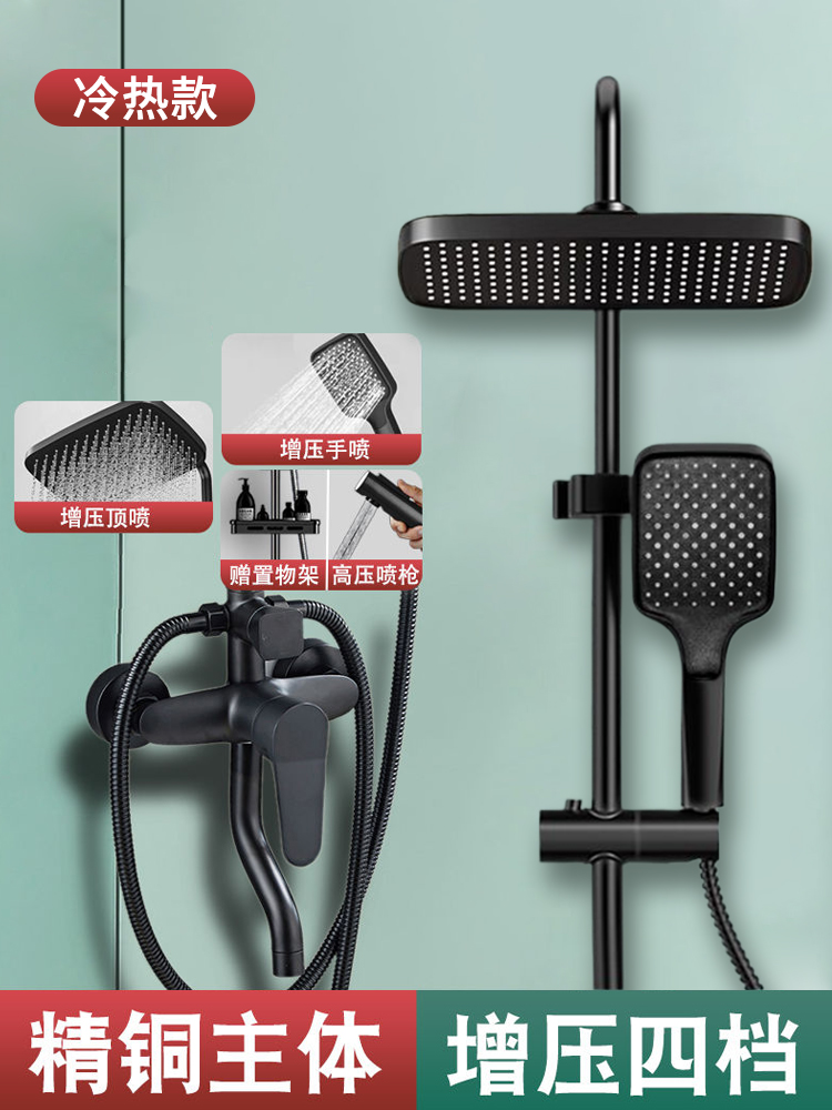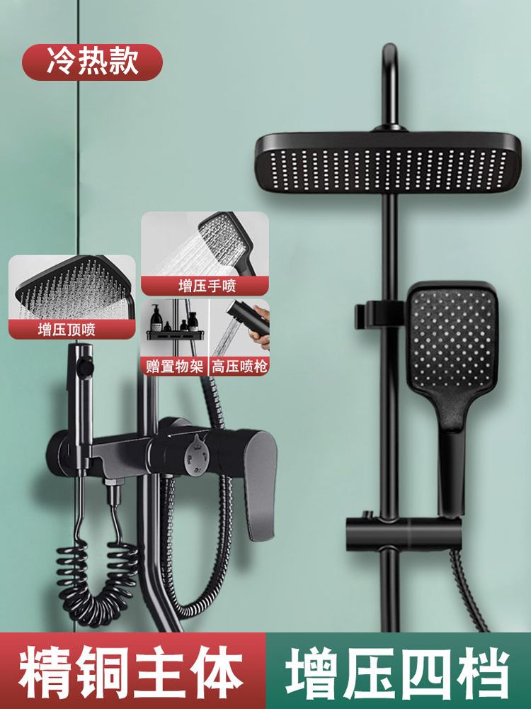 전체 구리 샤워 헤드 세트 레인 샤워 가정용 건 그레이 샤워 욕실 항온 표면 장착형 샤워 헤드 2324