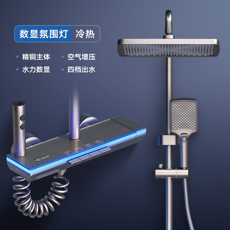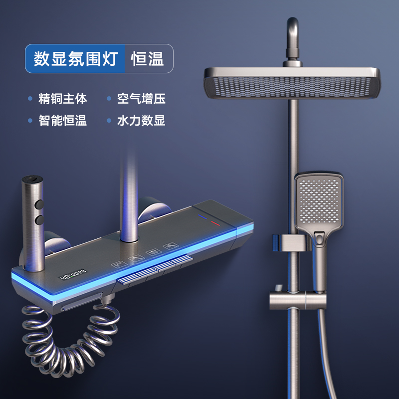• 전체 구리 두꺼워 [물 도금 건 그레이] 피아노 샤워 -E 모델-항온 디지털 디스플레이 모델