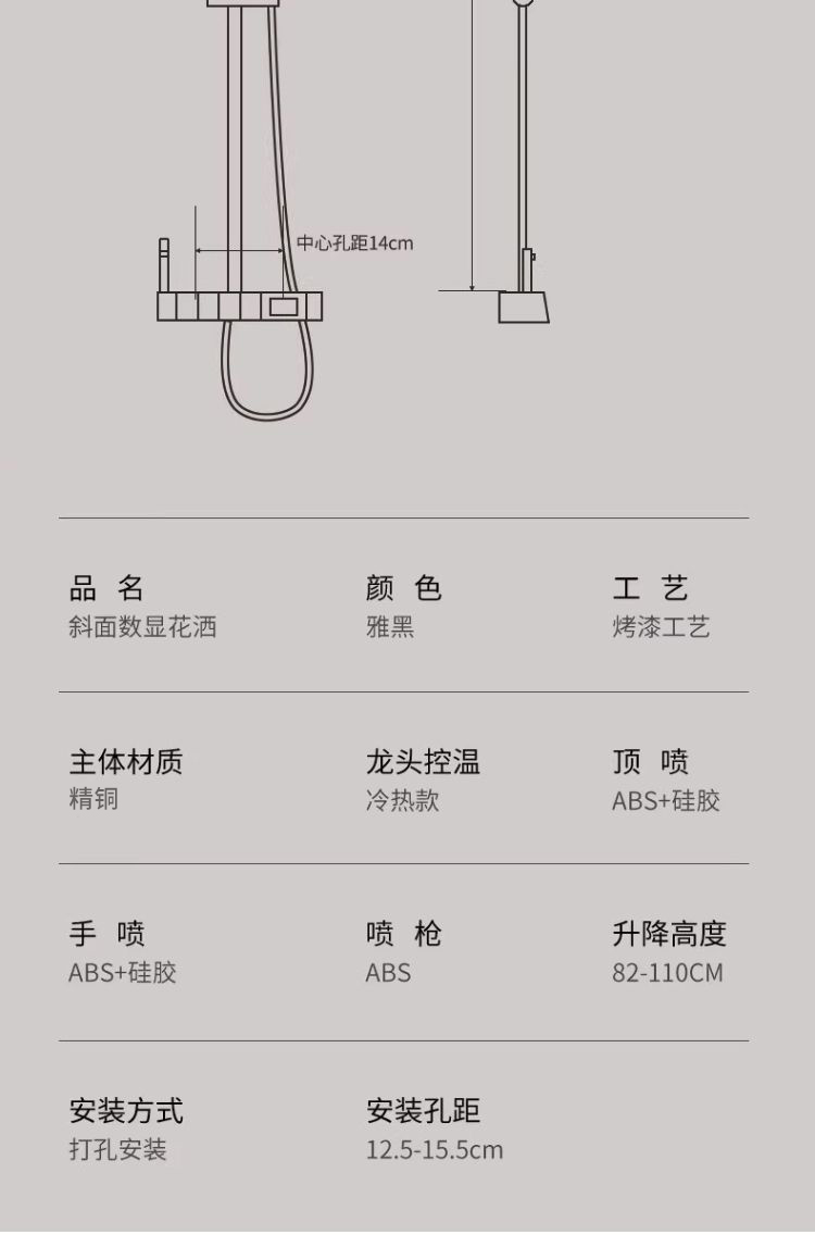 • 전체 구리 두꺼워짐 [물 도금 건 그레이] 피아노 샤워 - H 스타일 - 범용 디지털 디스플레이 스타일