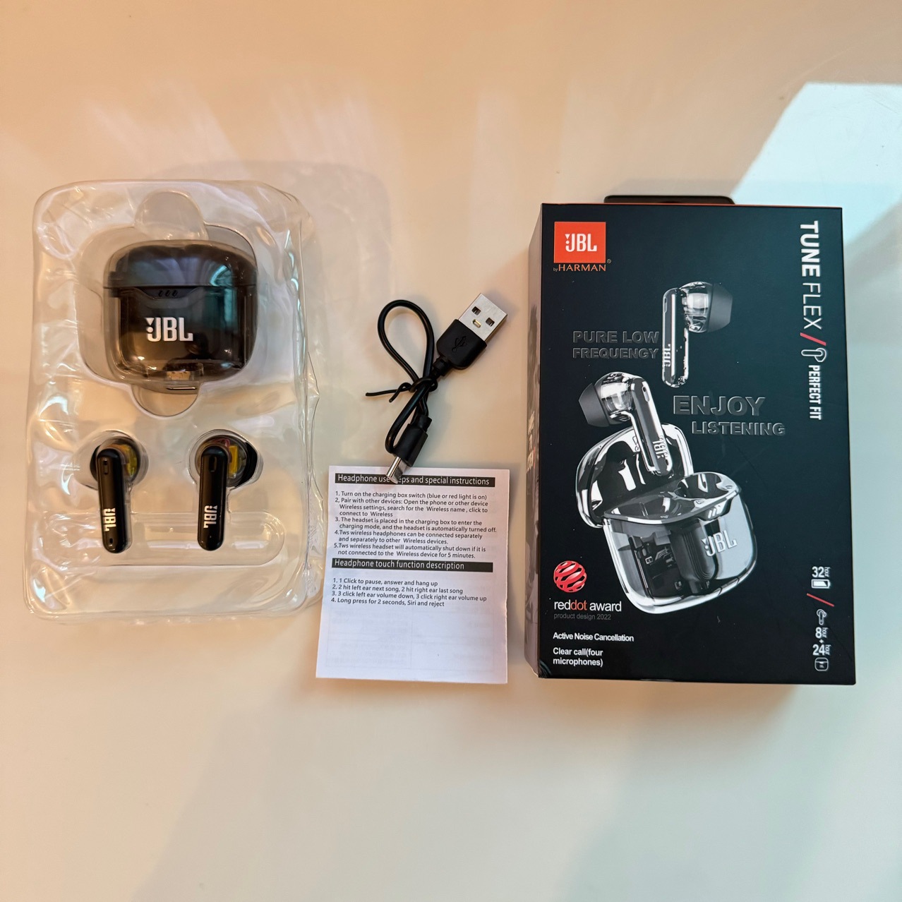 J. B.L TUNEFLEX 작은 콩 투명 블루투스 무선 말하는 조증 게임 헤드셋스토어 가기
