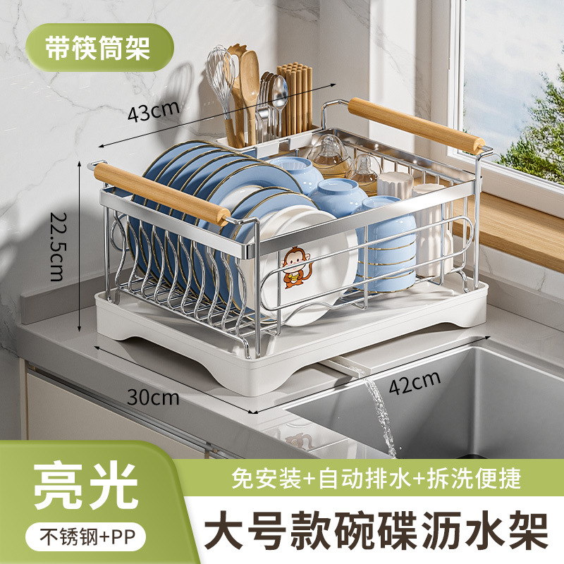 스테인리스 식기 건조대 주방 젓가락통 접시 및 그릇 보관대 싱크대용 접시 및 젓가락 보관대 무설치스토어 가기