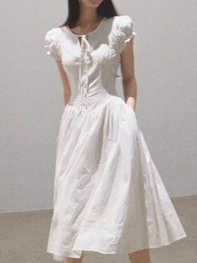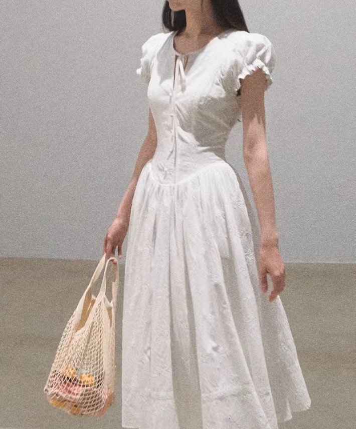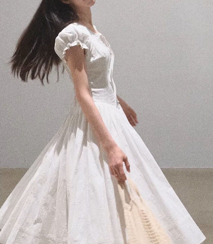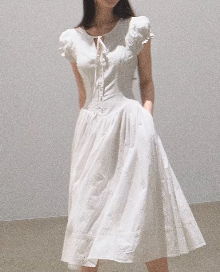 OAKMO/ "내가 사랑에 빠졌을 때" 올 코튼 프랑스 슬리밍 허리 자수 차 브레이크 휴일 원피스 스커트스토어 가기