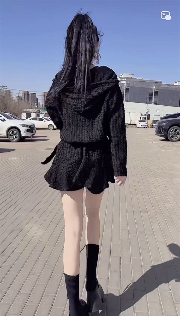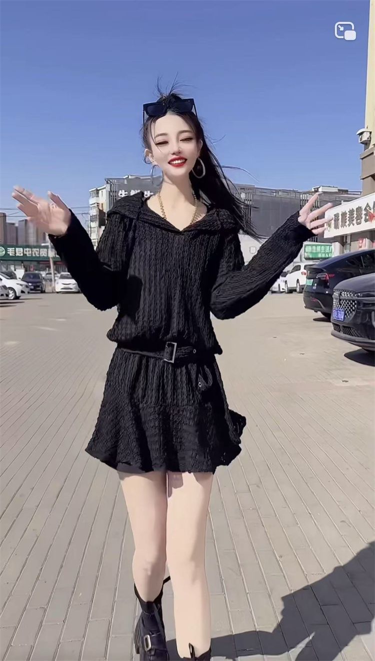 슬리밍 원피스 여성의 2025 새로운 빈티지 패션 느슨한 우아한 허리 배꼽이 중간 길이의 귀여운 모자를 입고 외부스토어 가기