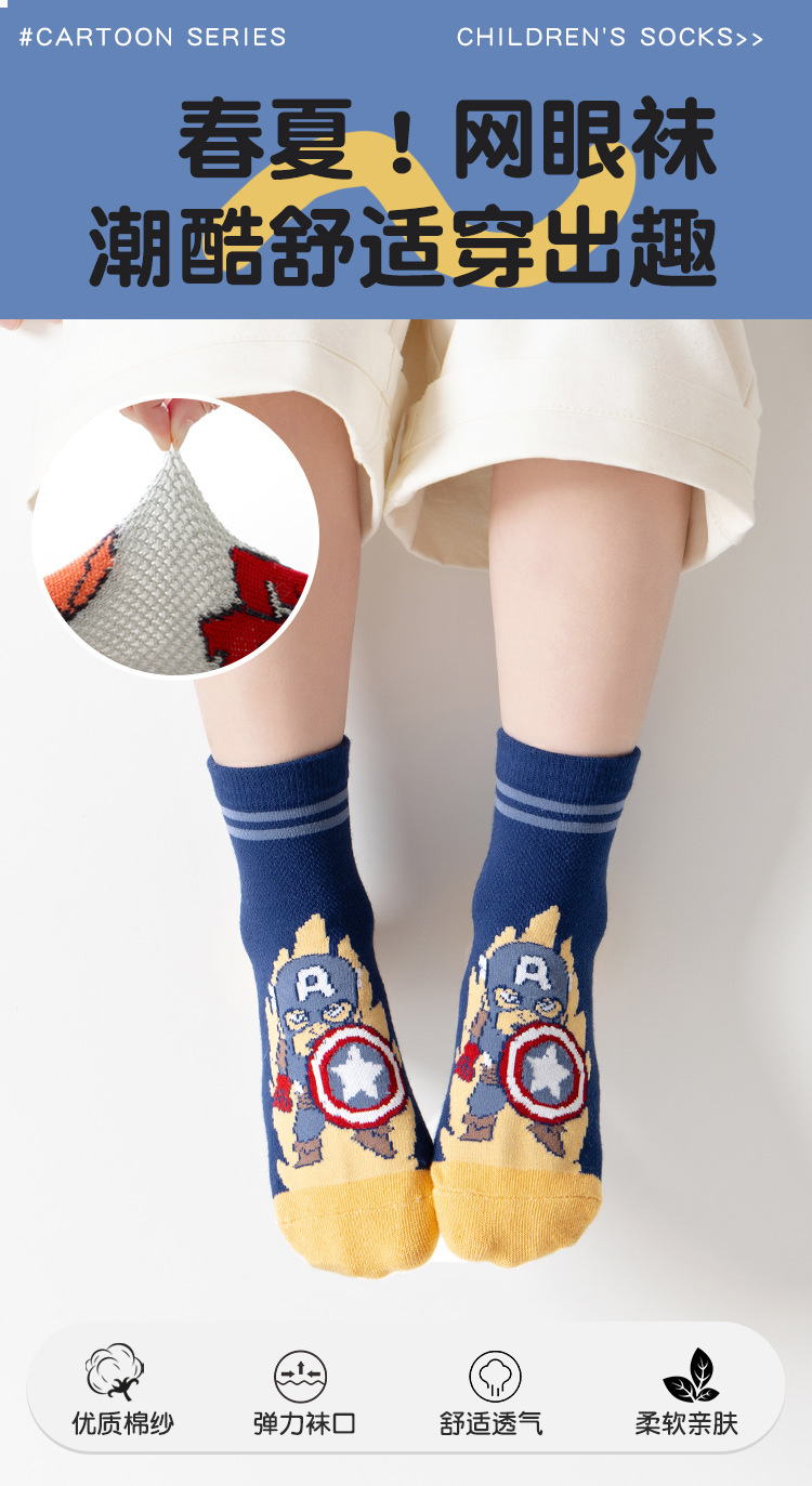 맞춤형 소년 양말 봄과 여름 만화 영웅 메쉬 보트 양말 어린이 양말 중형 및 대형 어린이면 양말 아기 양말스토어 가기