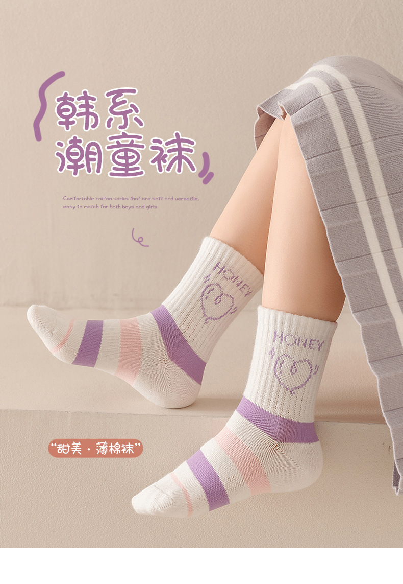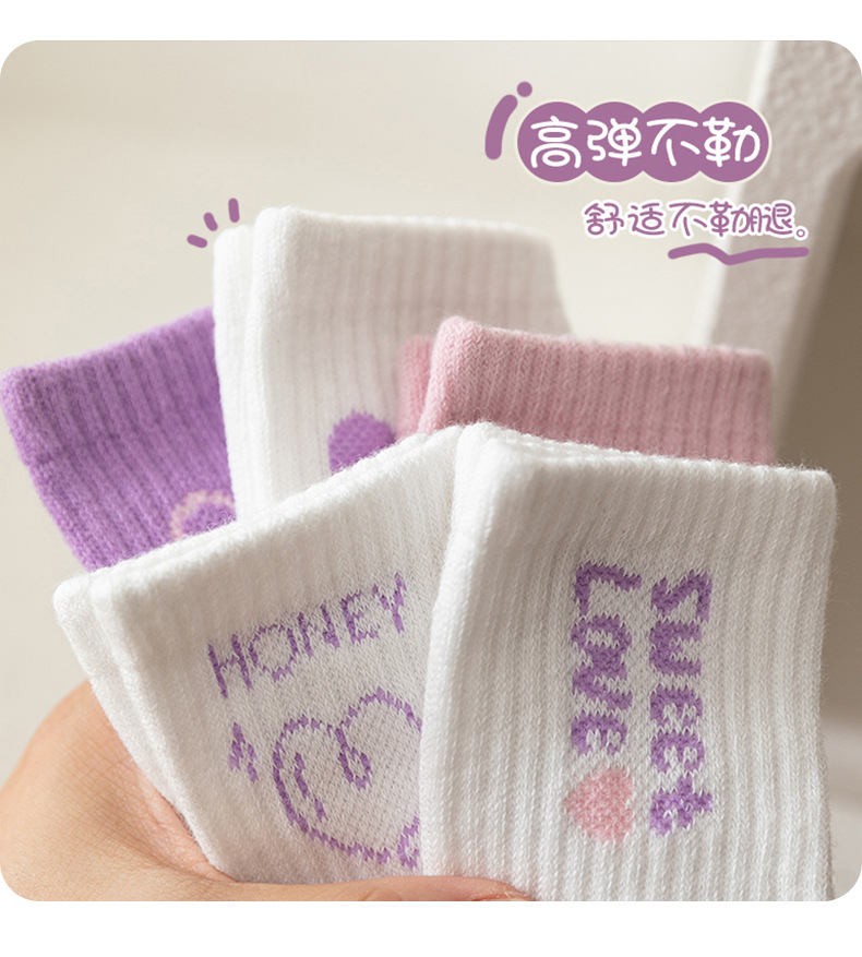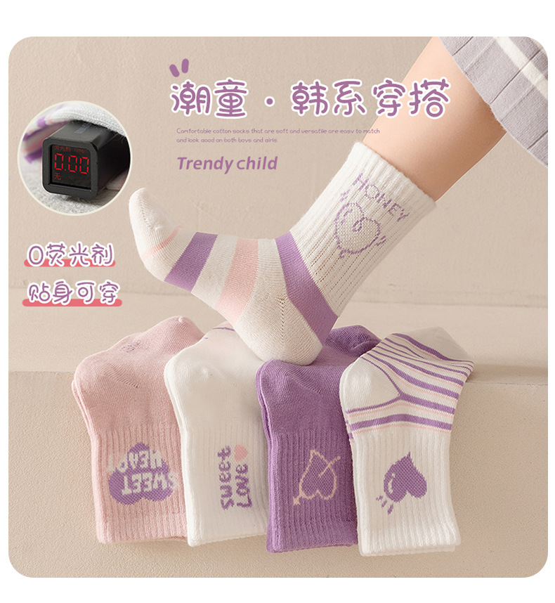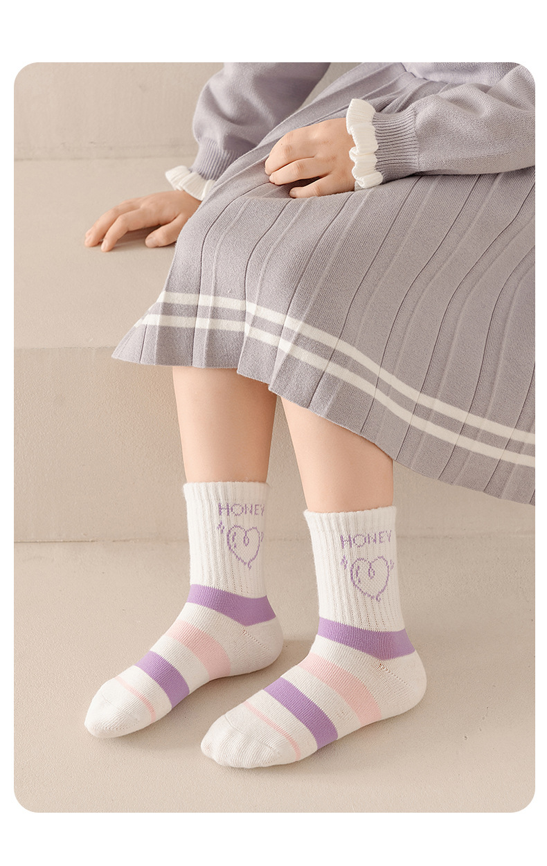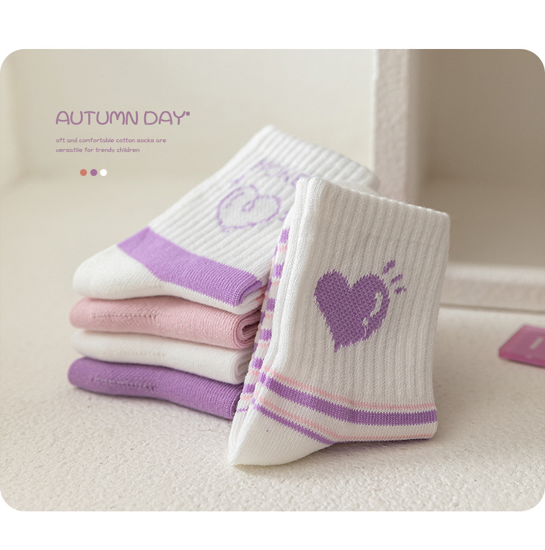 엄선된 새로운 가을 겨울 여아 양말, A급 면 양말, 중간 길이 양말, 보라색 고탄성, 편안하고 신축성이 없는 아동 양말스토어 가기