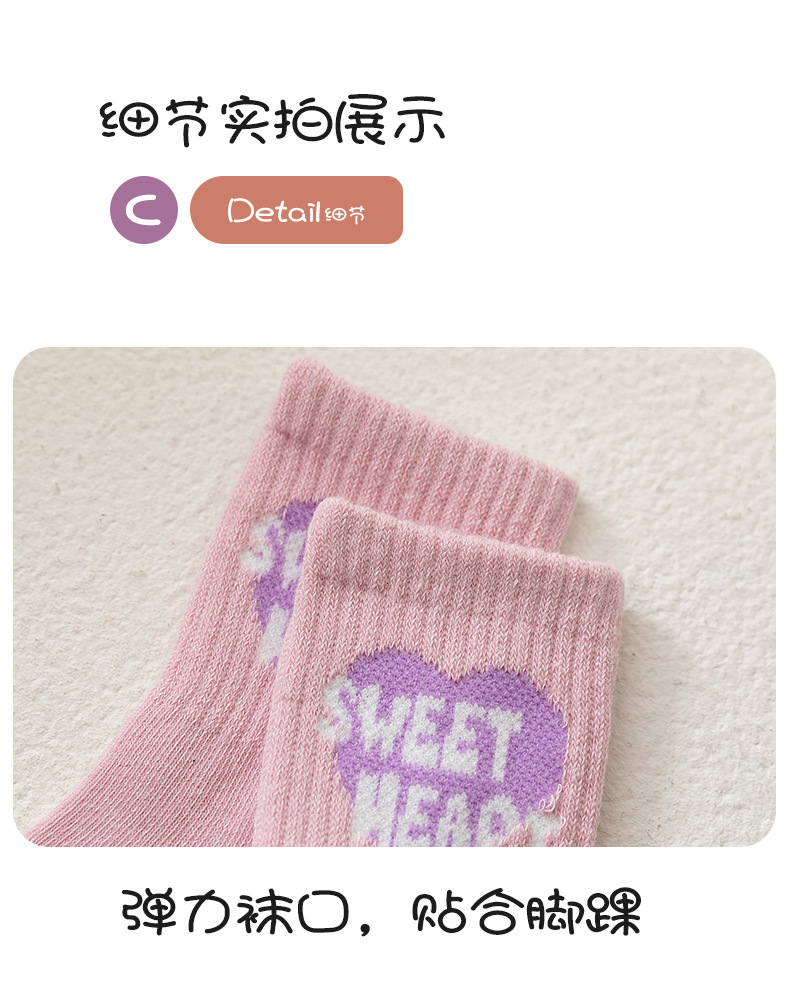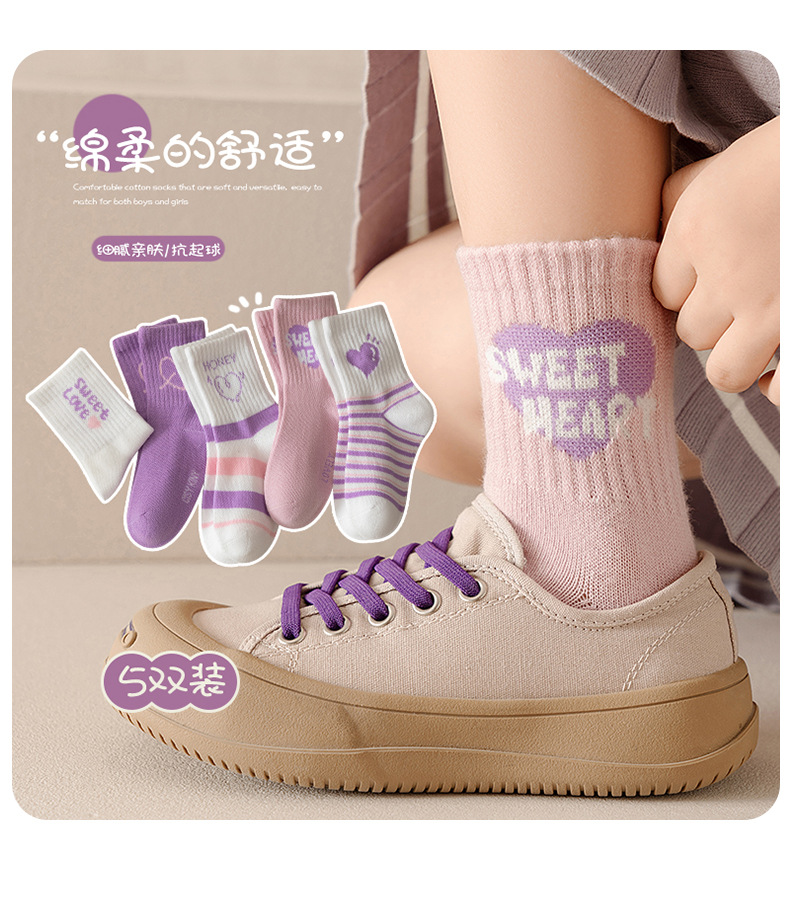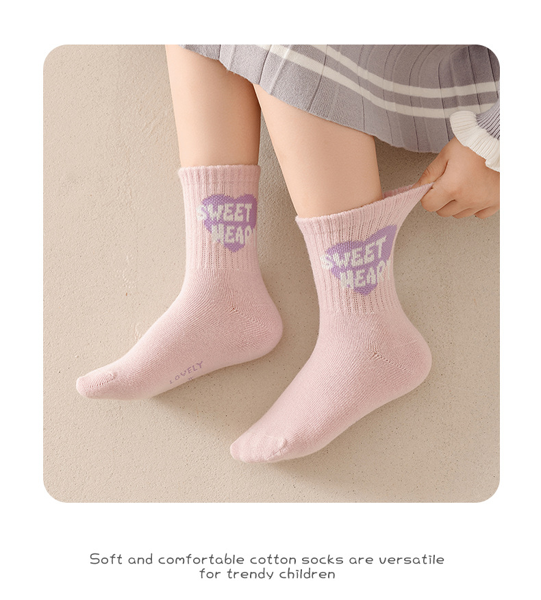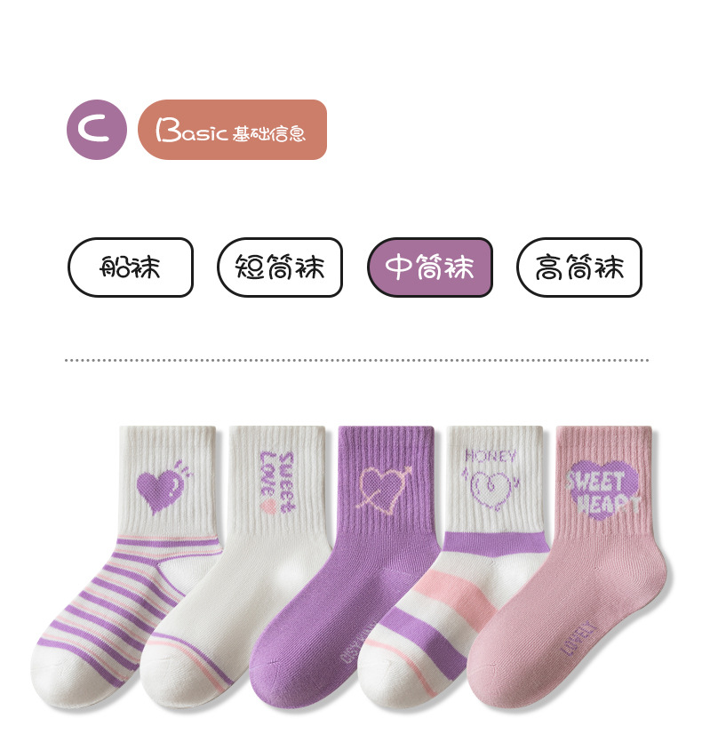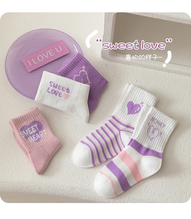 엄선된 새로운 가을 겨울 여아 양말, A급 면 양말, 중간 길이 양말, 보라색 고탄성, 편안하고 신축성이 없는 아동 양말스토어 가기