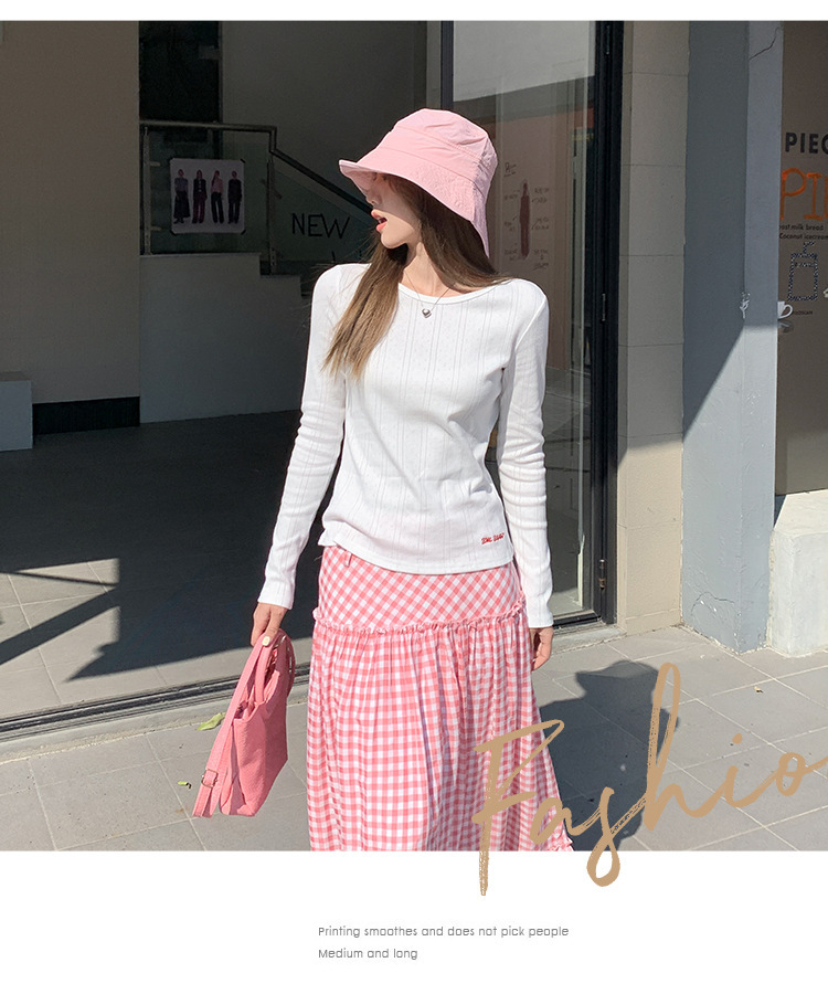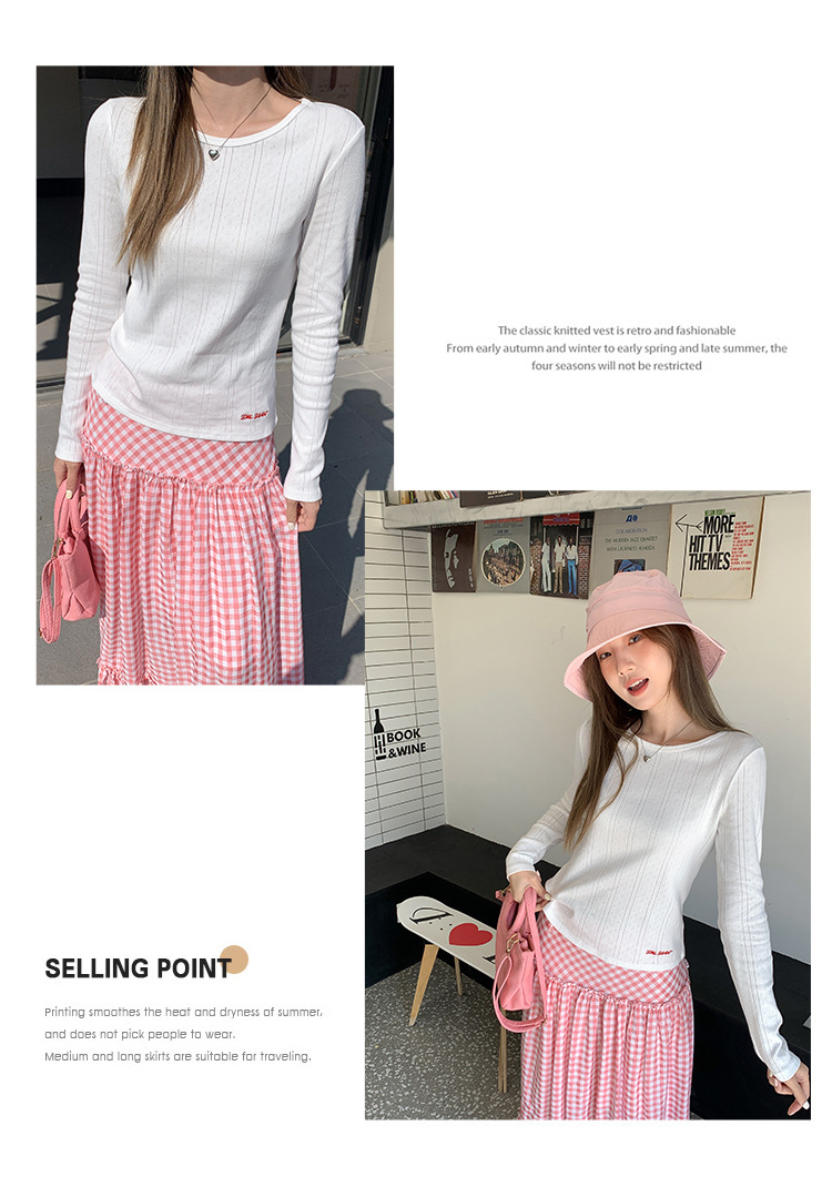 한국식 화이트 자카드 텍스처 크루 넥 긴팔 티셔츠 여성용 봄과 여름 슬림핏 슬리밍 탑스토어 가기