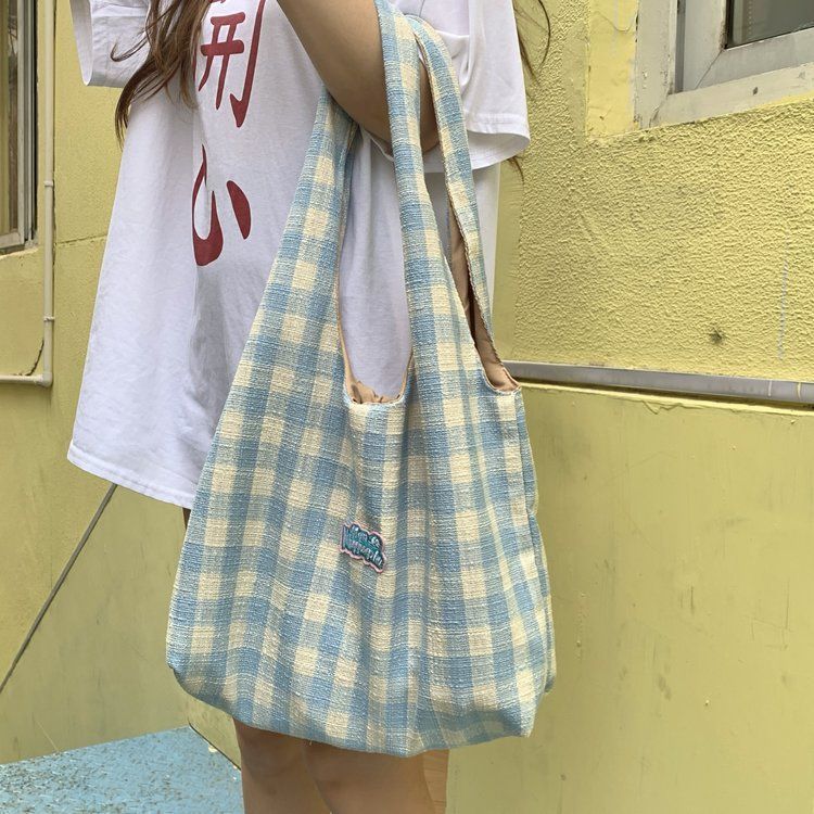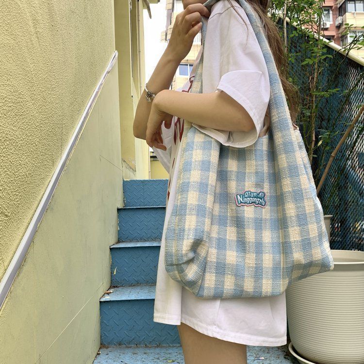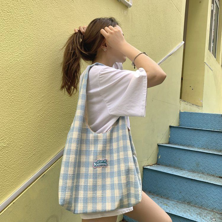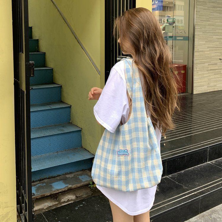 인 한국식 자수 편지 활 격자 무늬 달콤한 배낭 여자 양면 배낭 싱글 숄더백 크로스바디 백 올매치스토어 가기