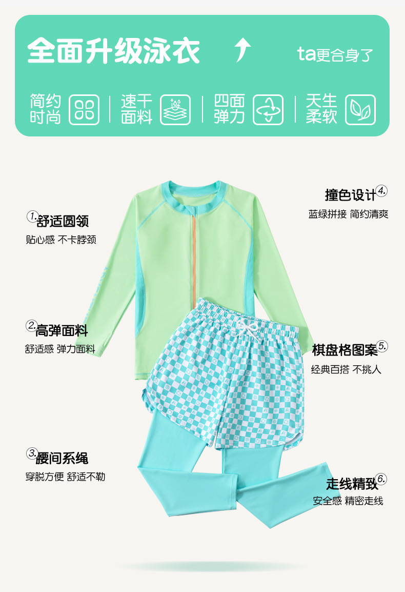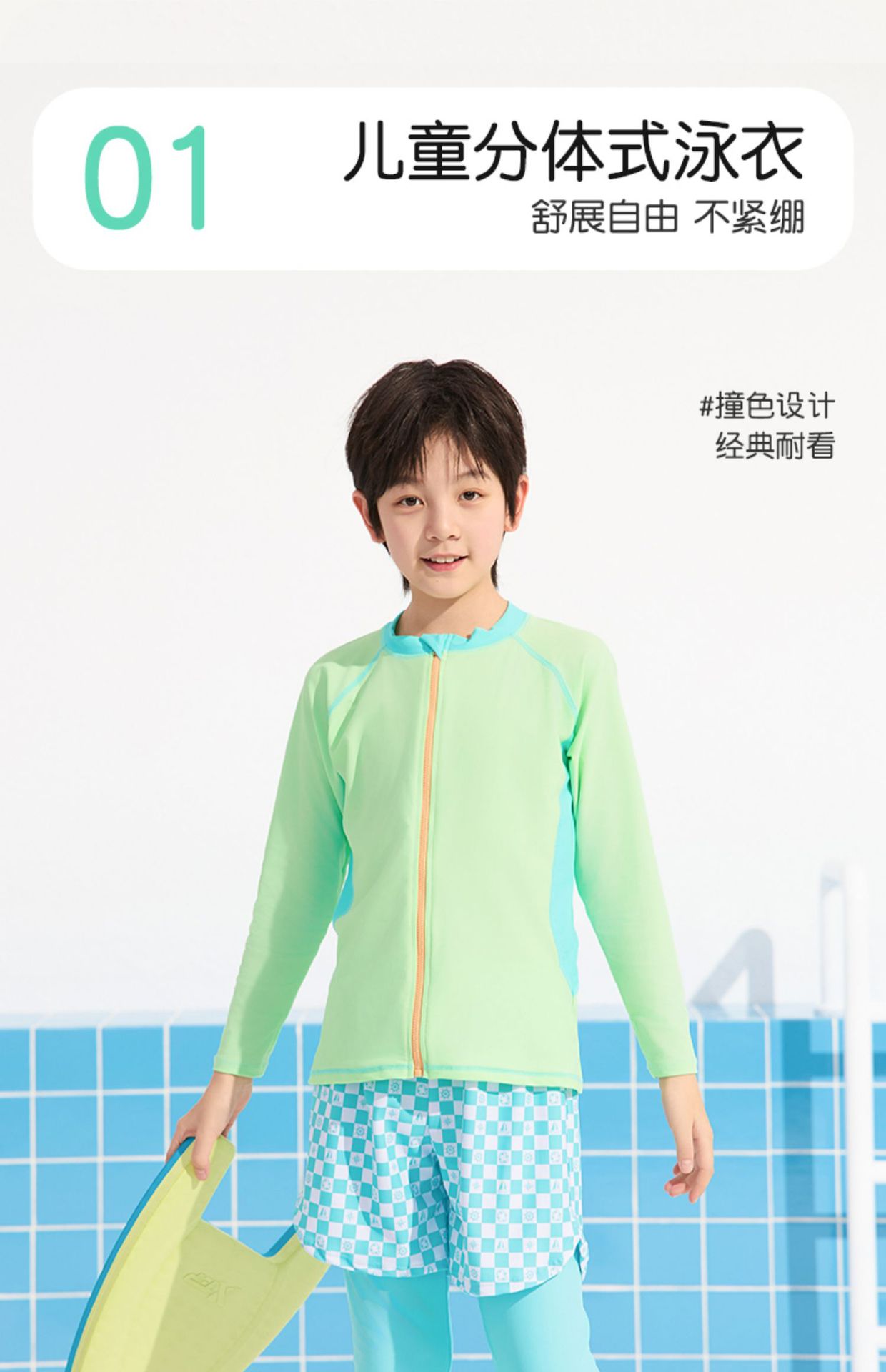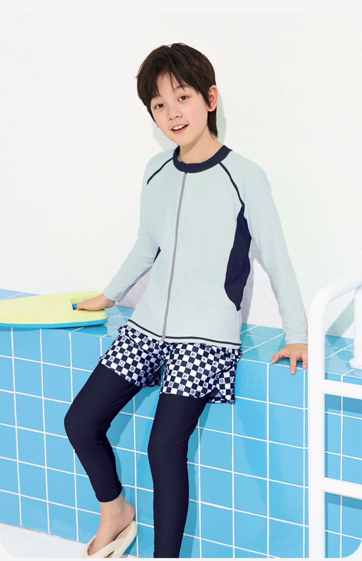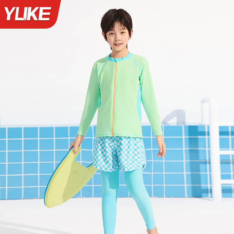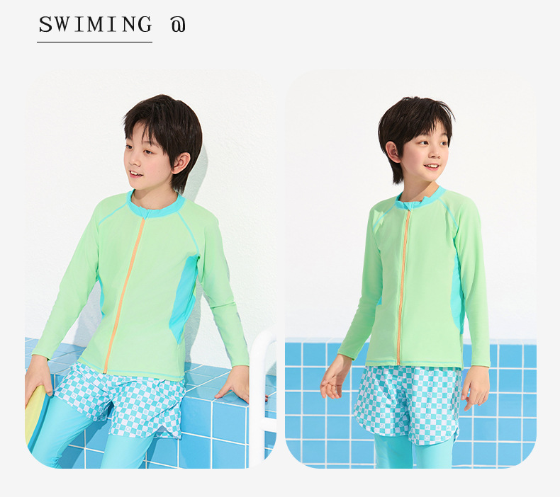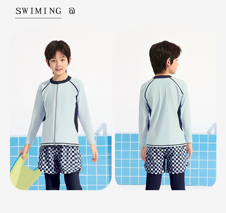 어린이 수영복 소년 2025 새로운 긴 소매 태양 보호 분할 수영복 십대 중 및 빅 키즈 소년 수영복 여름