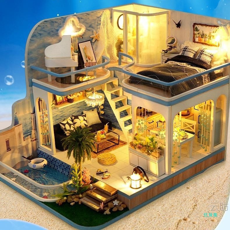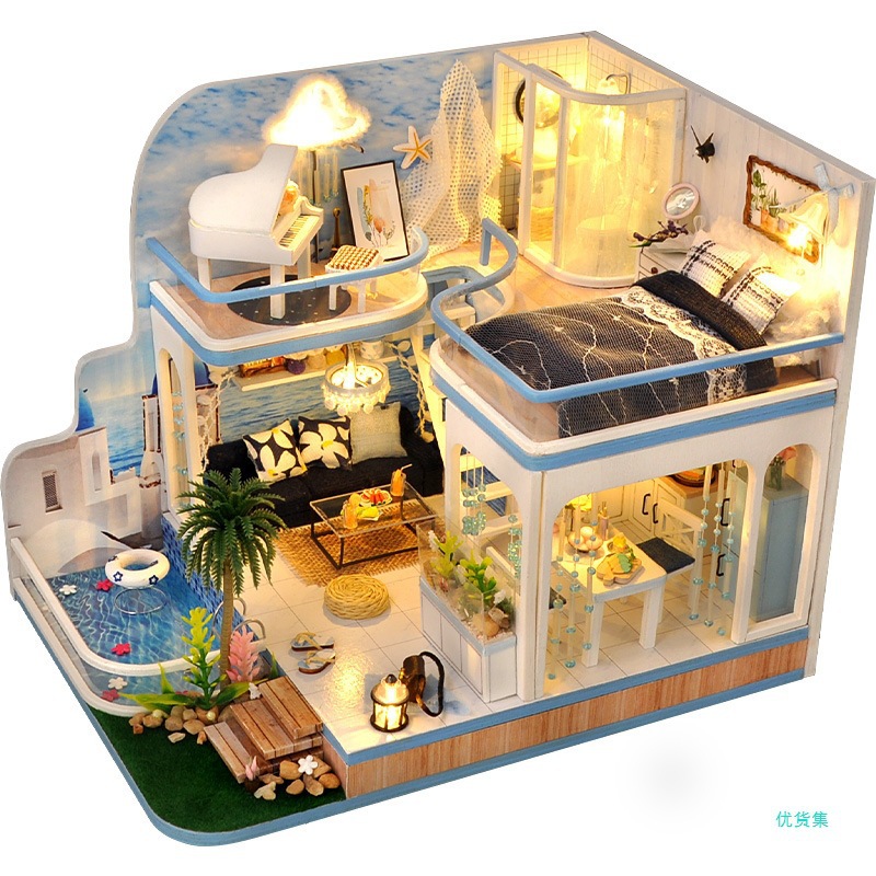 수제 오두막 빌라 작은 집 조립 건물 모델 미니 세계 빌딩 블록 장난감 생일 선물