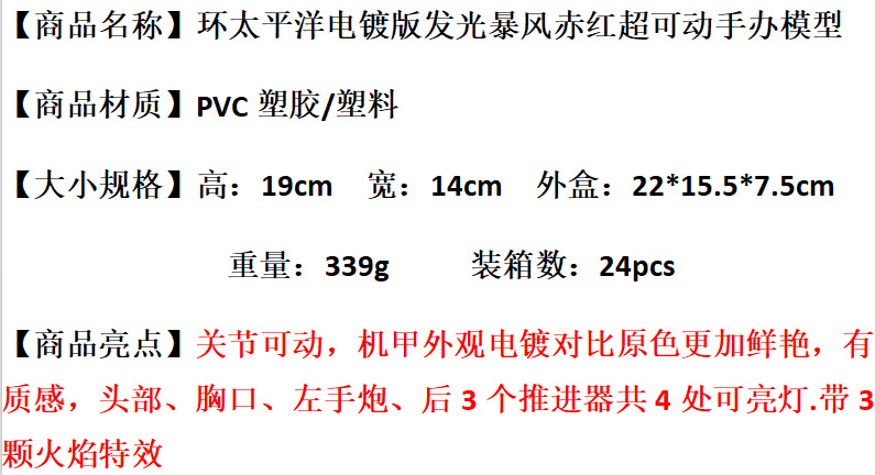 • 전기 도금된 디럭스 버전 빛나는 폭풍 붉은 높이 18cm