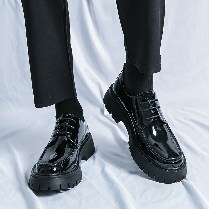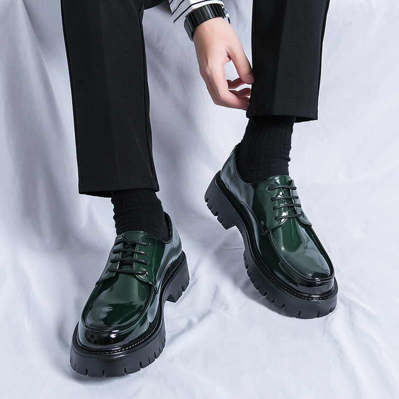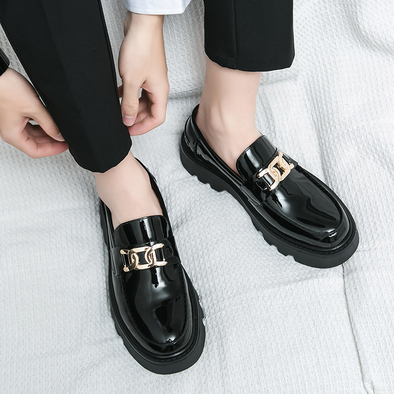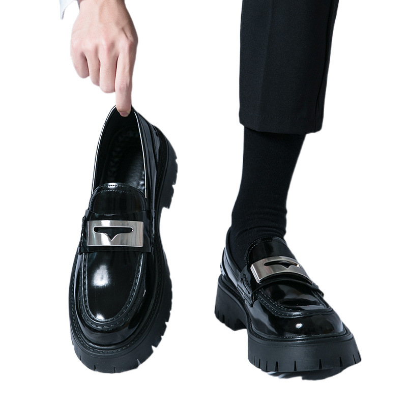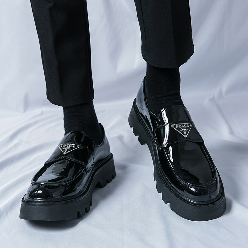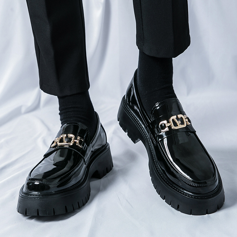 여름 통기성 가죽 신발 남성용 영국 스타일 높이 높이기 두꺼운 밑창 트렌디 광택 슬립 온 캐주얼 로퍼