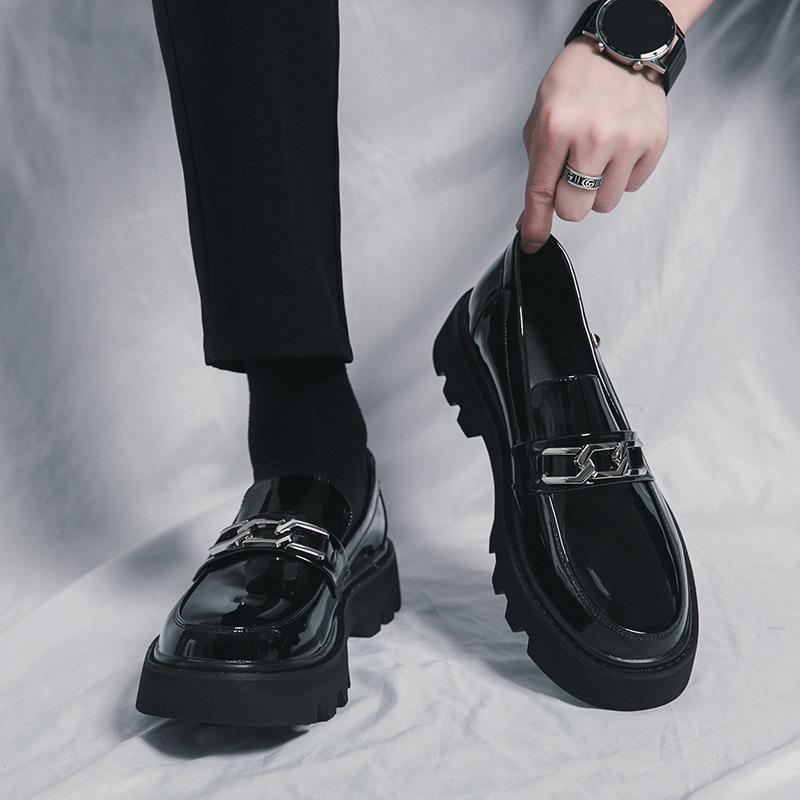 여름 통기성 가죽 신발 남성용 영국 스타일 높이 높이기 두꺼운 밑창 트렌디 광택 슬립 온 캐주얼 로퍼스토어 가기