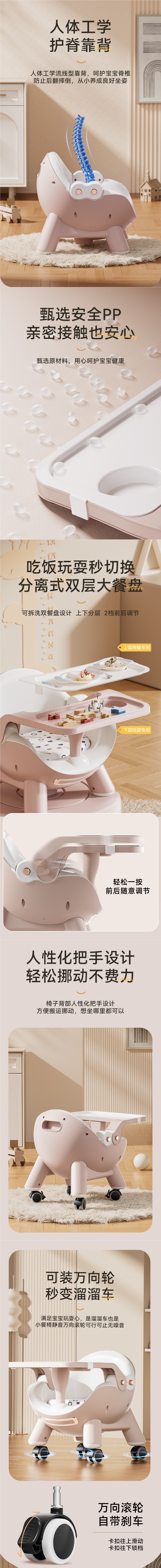 • 귀여운 핑크 + PVC 사운드 쿠션 + 더블 레이어 디너 플레이트 + 가변 테이블 + 범용 휠