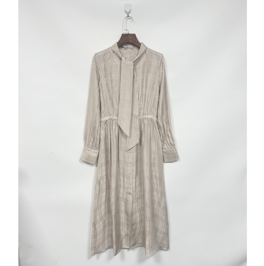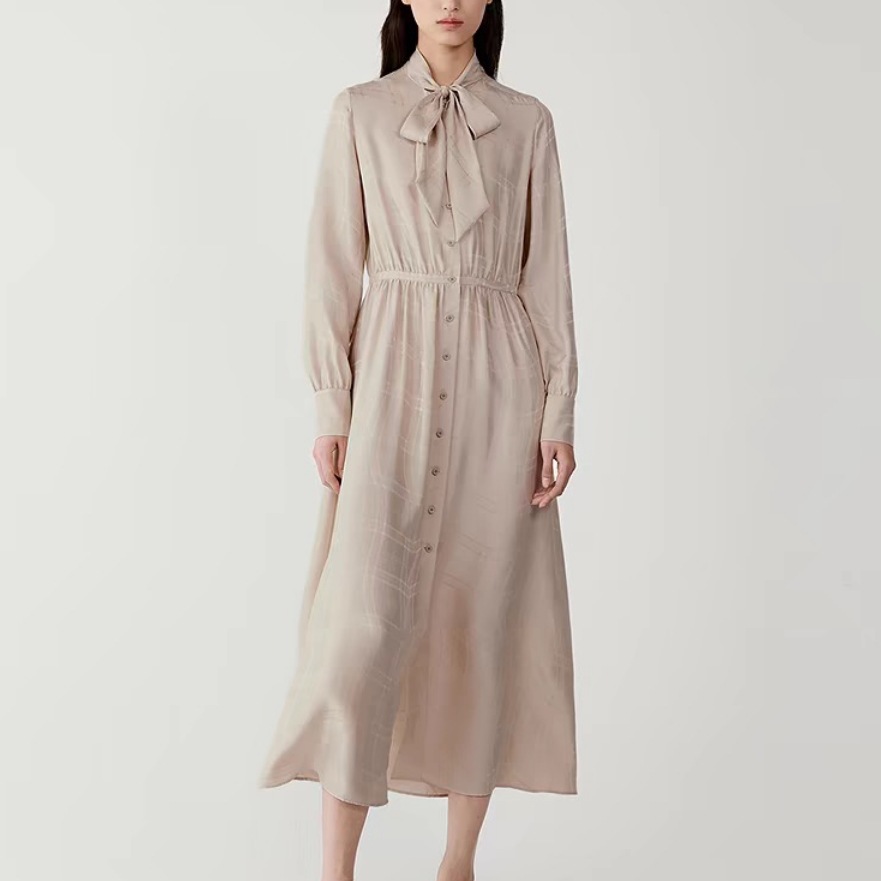 IC25 봄과 여름 새로운 우아한 자카드 삼보 새틴 실크 리본 기질 긴 원피스스토어 가기