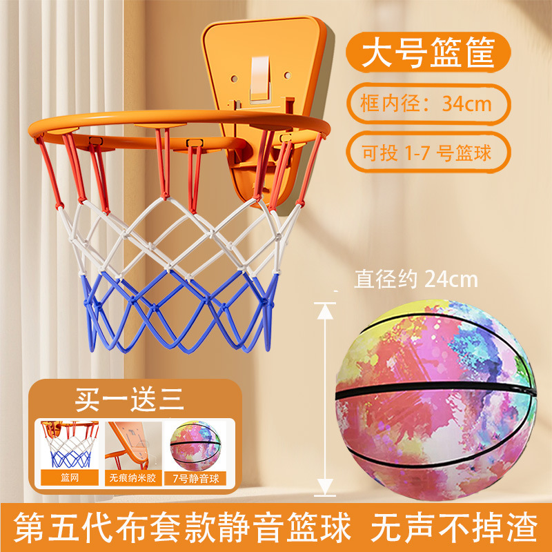 • 대형 벽걸이 농구대 + 슬래그 방지 7호 천 커버 사일런트 볼 [컬러풀]