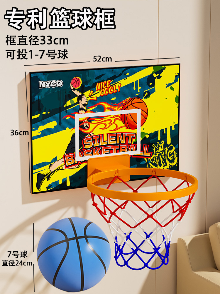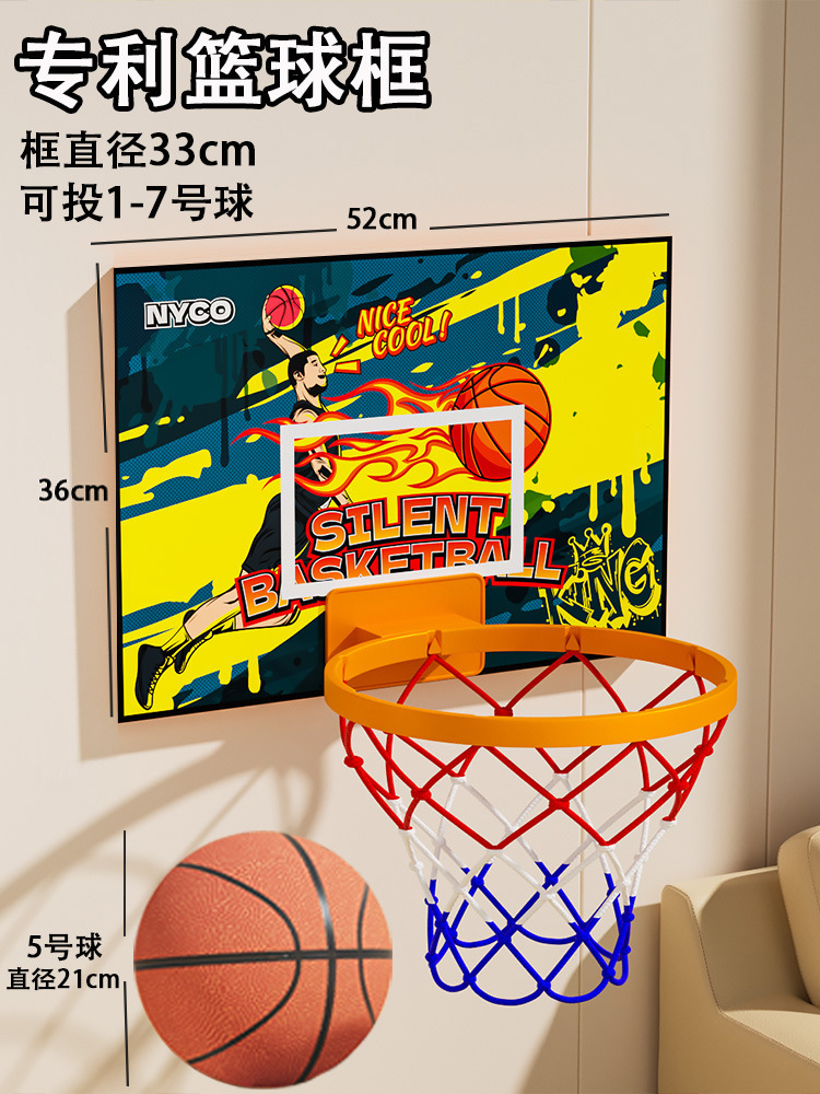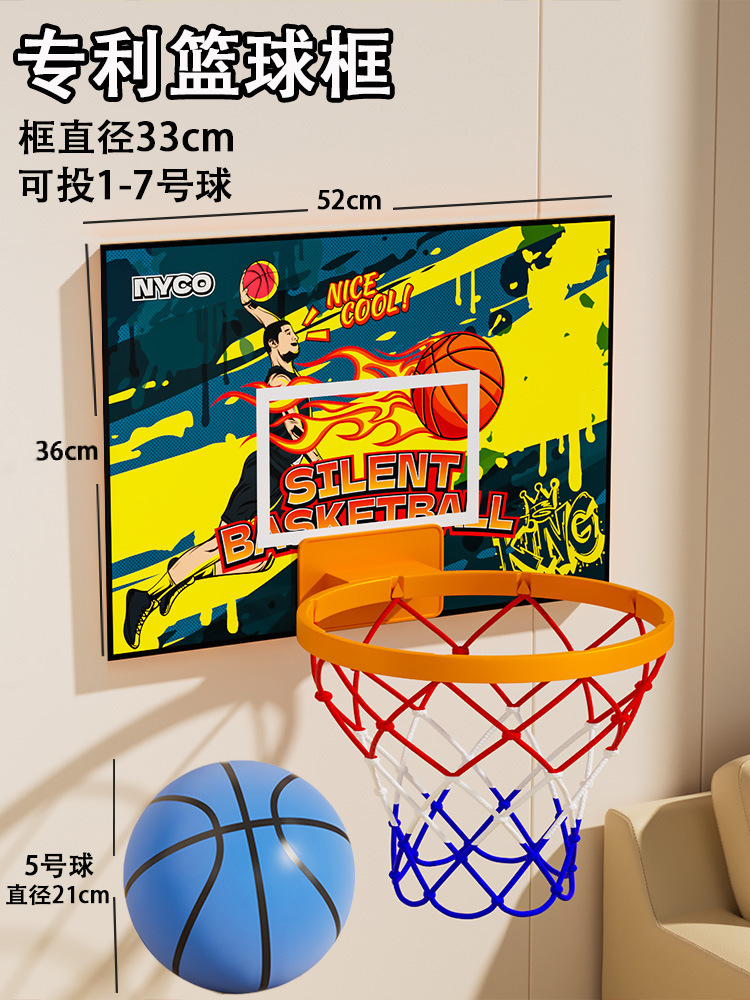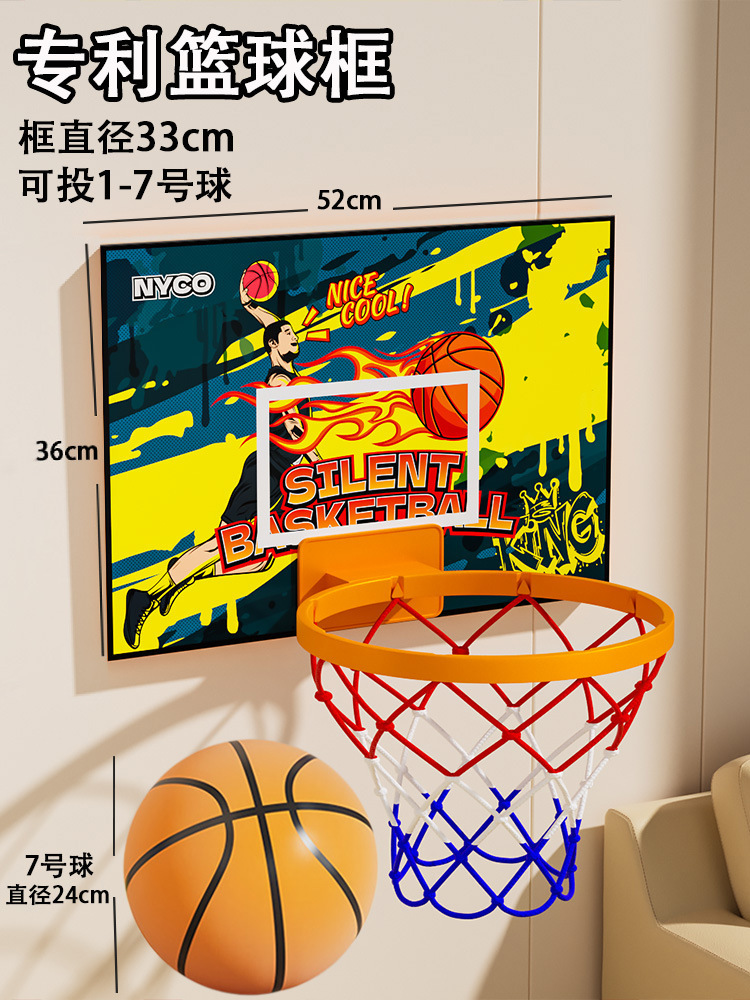 • 대형 벽걸이형 농구대 + 슬래그 방지 7호 천 커버 사일런트 볼 [농구 패턴]