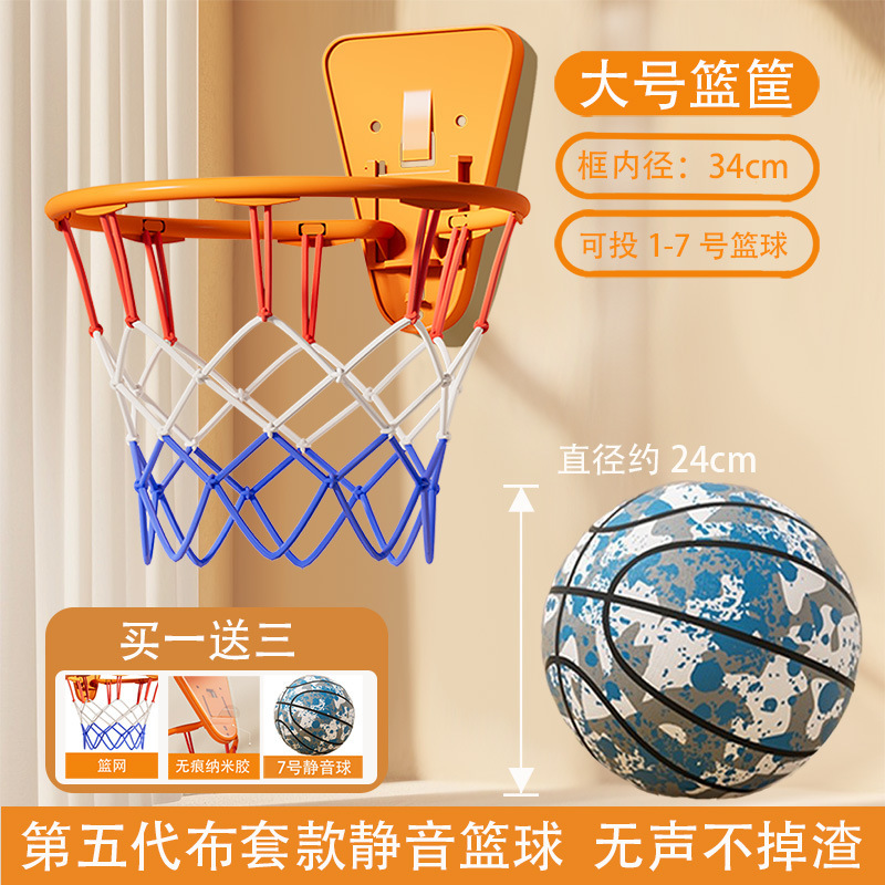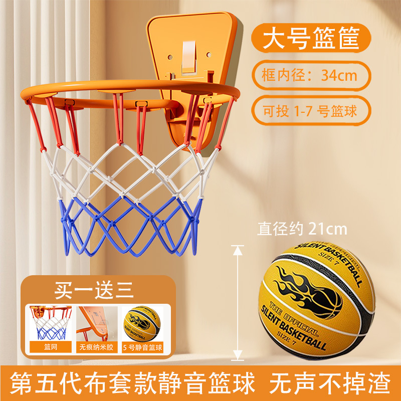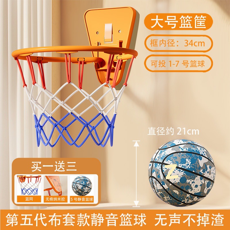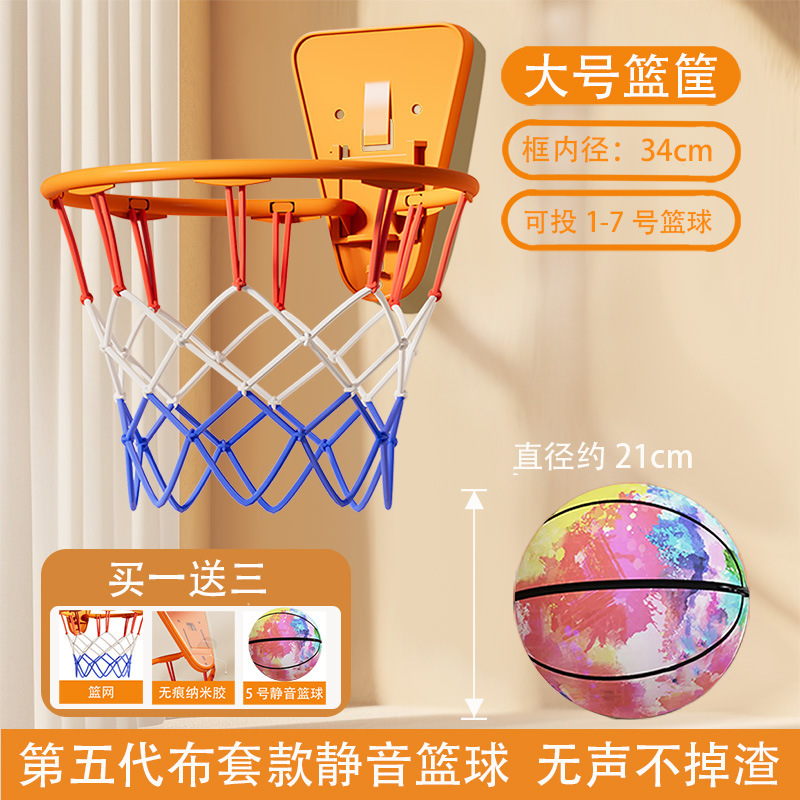 • 대형 벽걸이 농구대 + 슬래그 방지 5호 천 커버 사일런트 볼 [컬러풀]