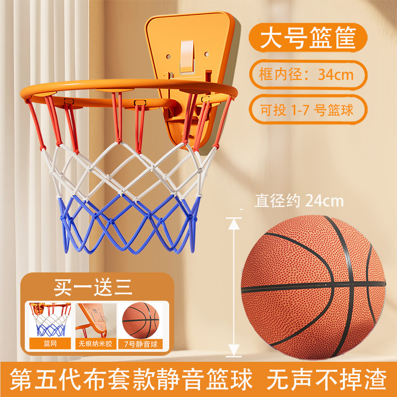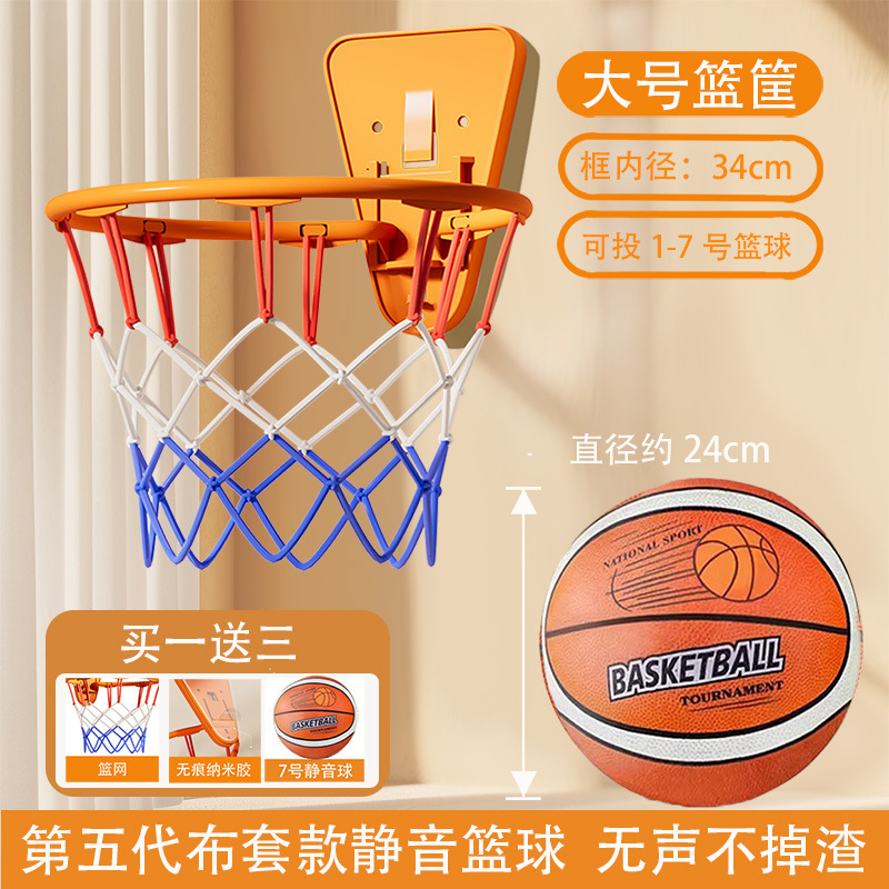 • 대형 벽걸이 농구대 + 슬래그 방지 7호 천 커버 사일런트 볼 [주황색]