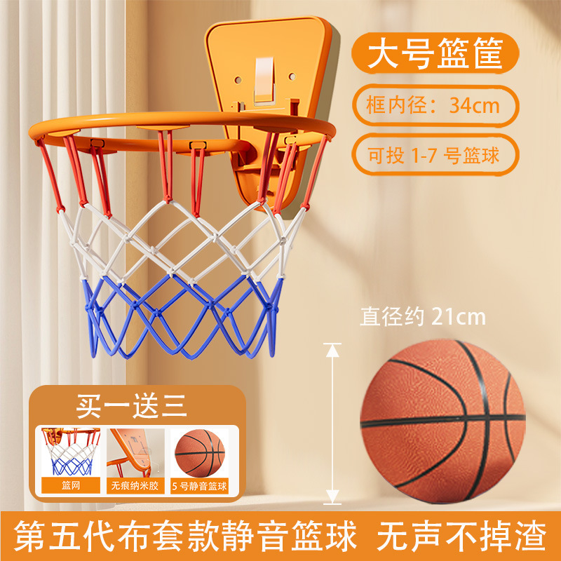 • 대형 벽걸이 농구대 + 슬래그 방지 5호 천 커버 사일런트 볼 [주황색]