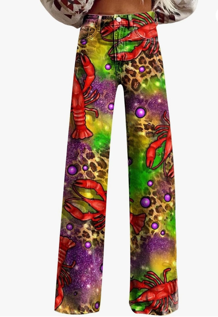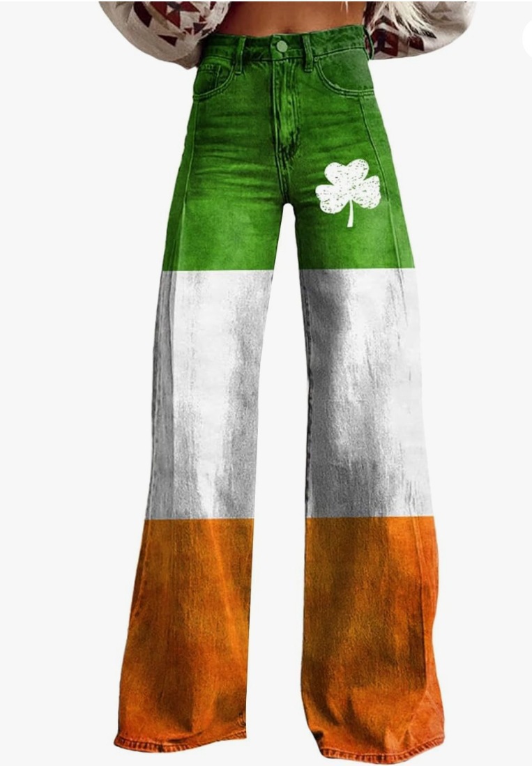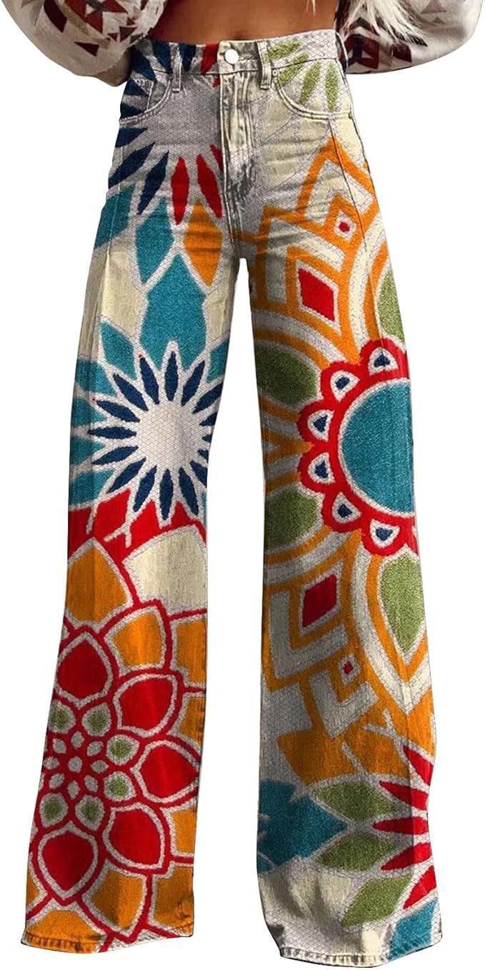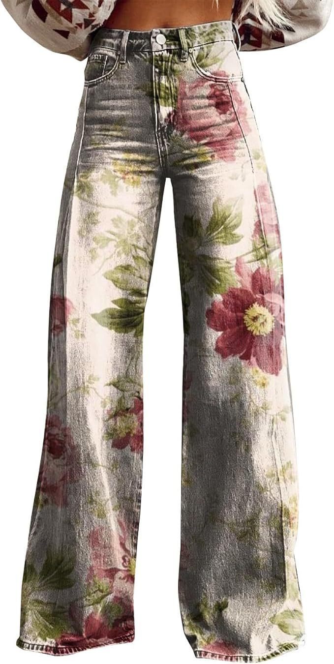 대외 무역 전자 상거래 여성용 와이드 팬츠 새로운 3D 프린트 플레어 팬츠 시뮬레이션 데님 바지 봄, 가을 얇은 스타일스토어 가기
