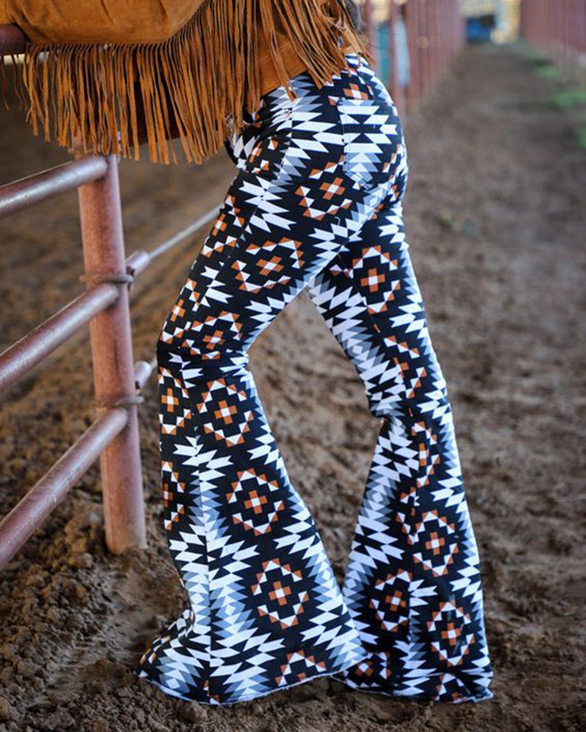 外贸电商专女士阔腿裤 新款3D印花喇叭裤 仿真牛仔长裤春秋季薄款