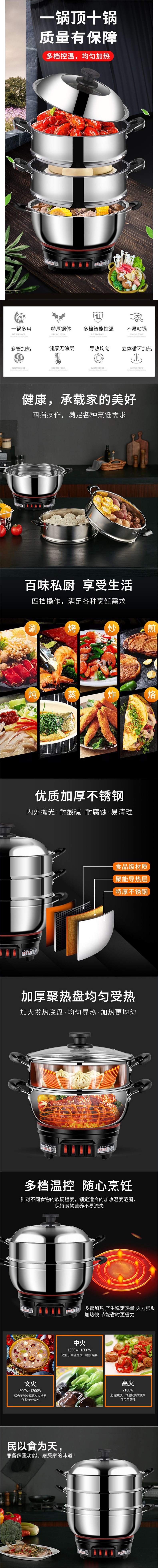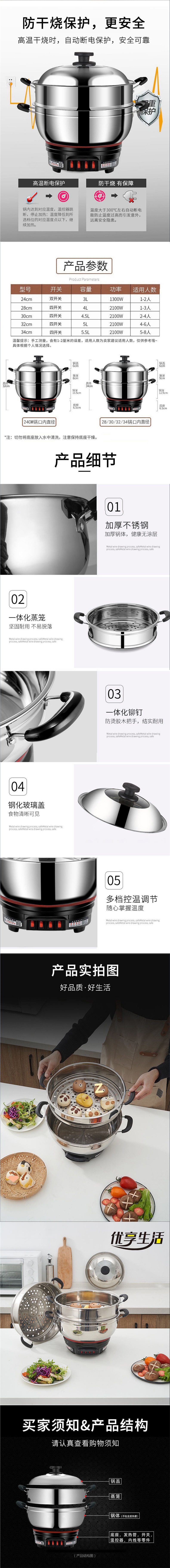 플래그십 신형 초두꺼운 다기능 전기냄비 스테인리스 전기 냄비, 찜, 조리, 기숙사 만능냄비스토어 가기