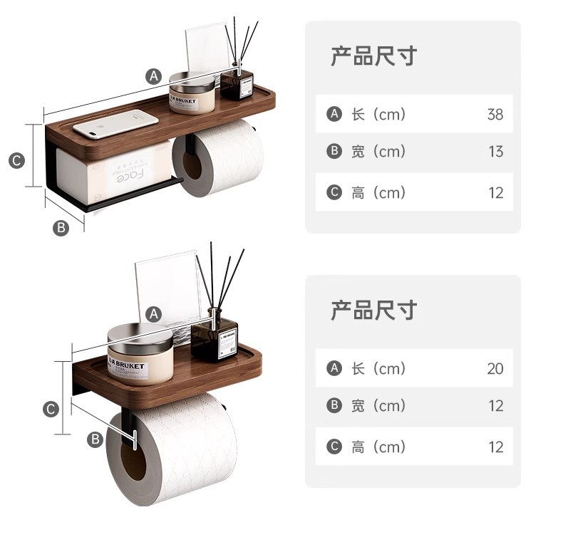 • 두꺼운 호두 + 검정색 프레임丨종이 롤 홀더