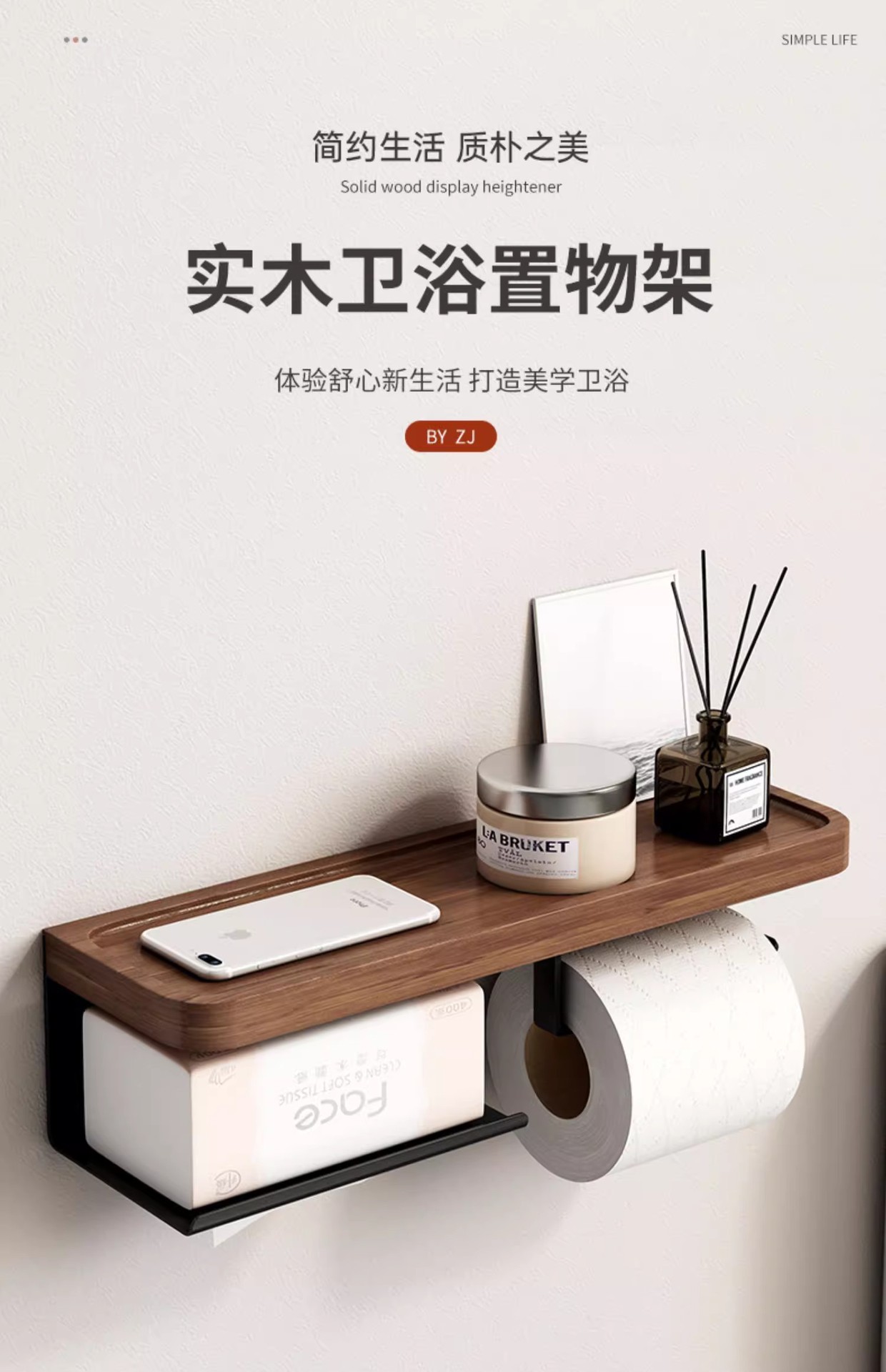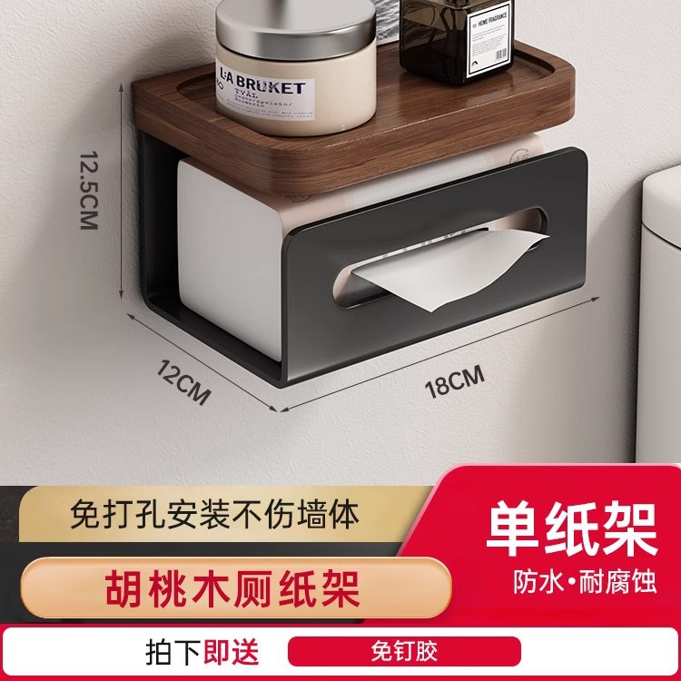 实木卫生间厕纸盒置物架墙上厕所卫生纸免打孔浴室架抽纸盒卷纸架