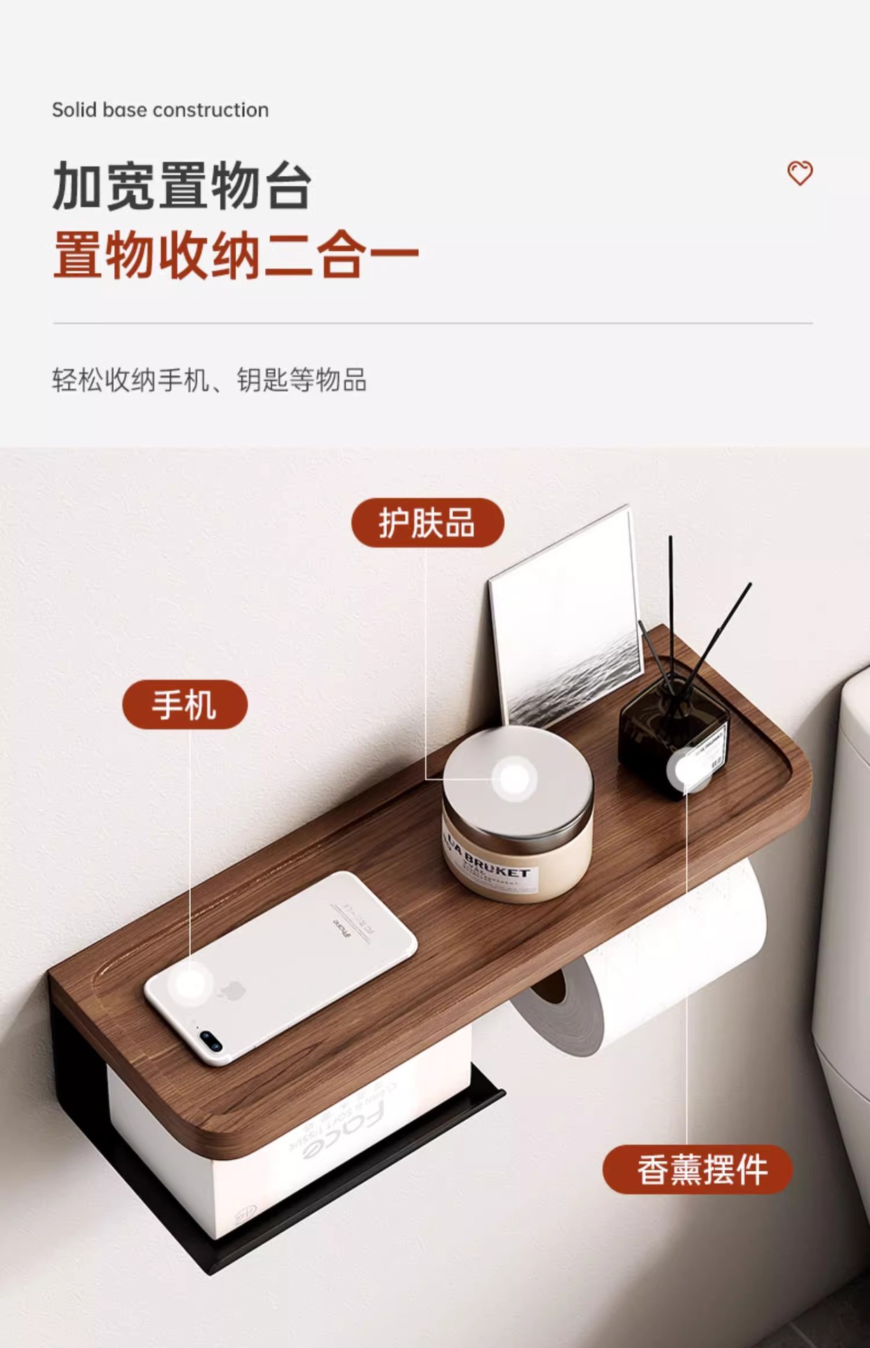 • 두꺼운 참나무 + 흰색 프레임丨종이 롤 홀더