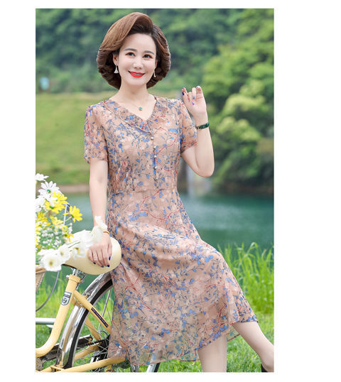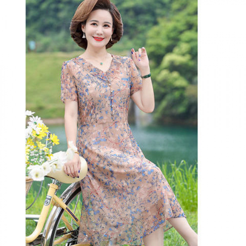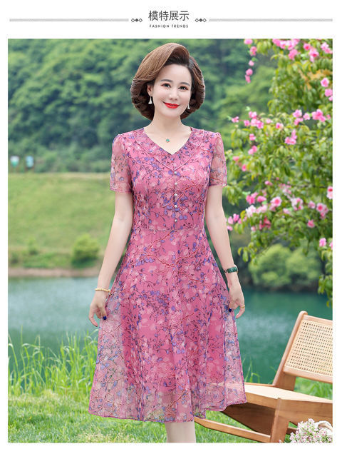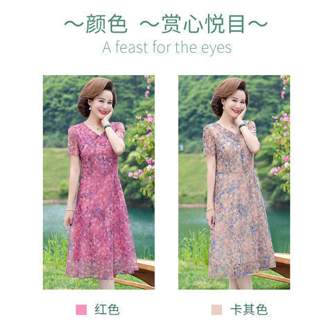 어머니 원피스 고기 긴 무릎 패션 서양 스타일 2024 새로운 어머니 원피스 서양식 여름 원피스 원피스 원피스스토어 가기