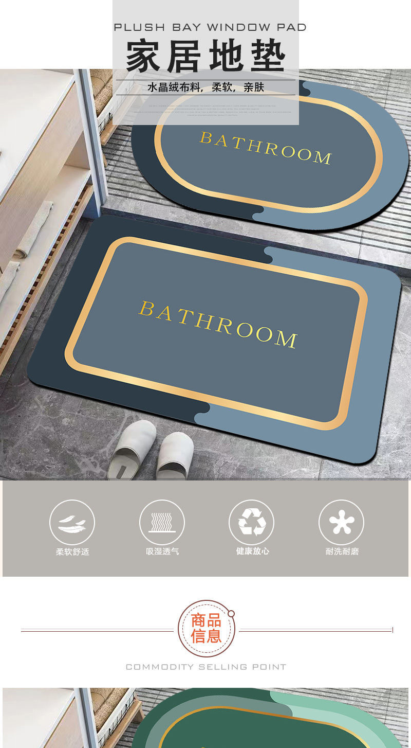 욕실 흡수성 바닥 매트, 가정용 욕실 욕실 문 매트, 미끄럼 방지, 흡수성 및 얼룩 방지 발 매트스토어 가기