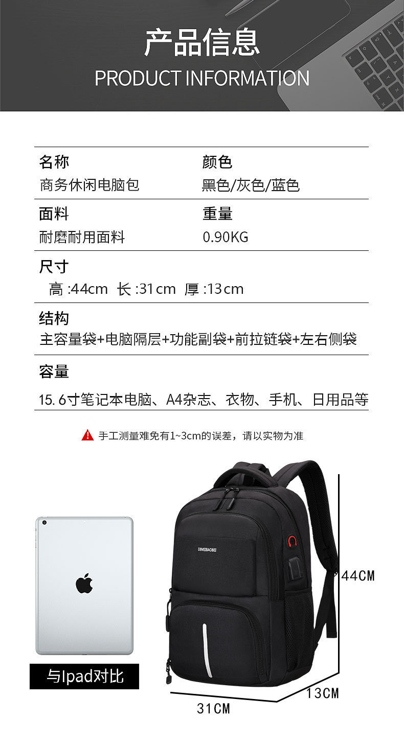 새로운 배낭 야외 사진 가방 비즈니스 캐주얼 출장 USB 인터페이스 대용량 남성용 배낭스토어 가기